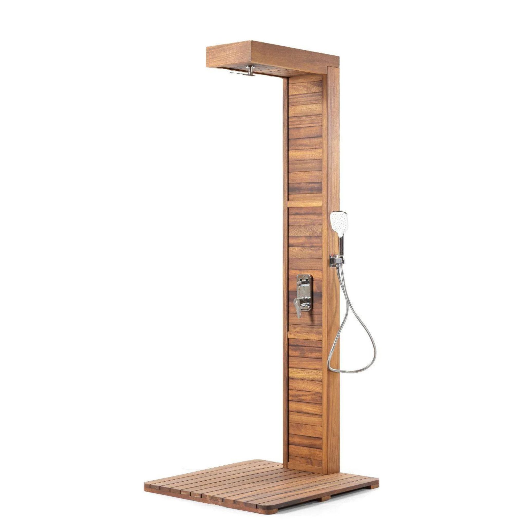 Das Eiffel Iroko Gartendusche-Set bietet Ihnen ein stilvolles und langlebiges Duscherlebnis in Ihrem Garten. Gefertigt aus hochwertigem Iroko-Holz, kombiniert es natürliche Schönheit mit Haltbarkeit und ist die perfekte Ergänzung für Ihren Außenbereich. Ob für den Pool, den Whirlpool oder den Strandbereich, das elegante Design und die robuste Bauweise machen es zu einer hervorragenden Wahl für eine erfrischende Dusche im Freien.