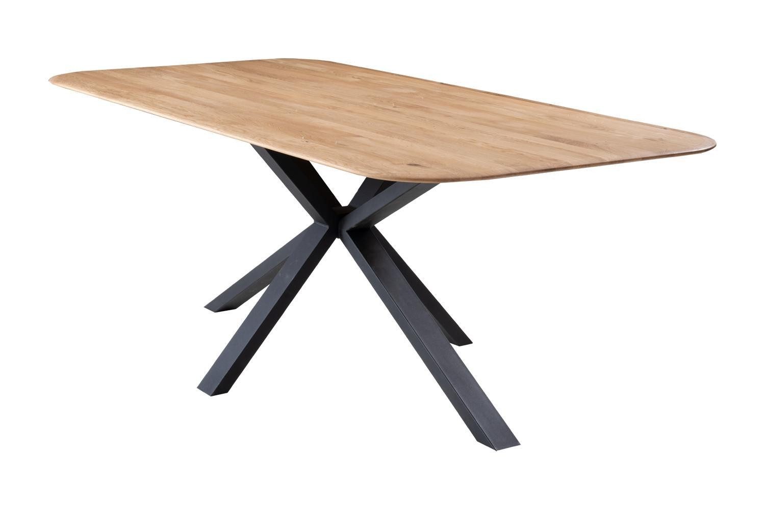 Entdecken Sie den Esstisch TI-0670 von G + K. Ein elegantes Möbelstück mit einer massiven Wildeiche-Tischplatte, geölt für natürlichen Glanz. Seine großzügigen Maße von 200 x 100 cm bieten ausreichend Platz für gesellige Mahlzeiten. Das schwarze Jupiter-Gestell aus robustem Metall verleiht ihm einen modernen Touch und stabilen Halt.