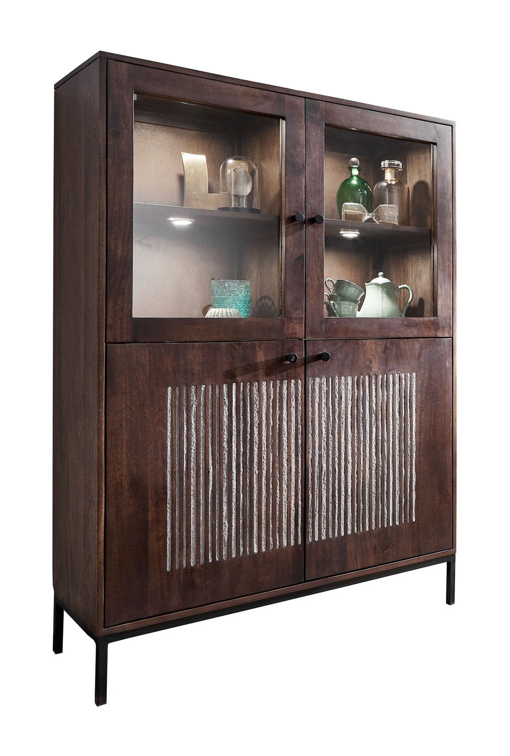 Lieferumfang | 1 Highboard mit 2 Türen mit Glasfronten, 2 Holztüren und 4 Holzböden. Ohne Beleuchtung. Dieser Artikel ist ein Unikat aus natürlich gewachsenem Holz. Kleine Abweichungen in Farbe und Material sind daher möglich. |