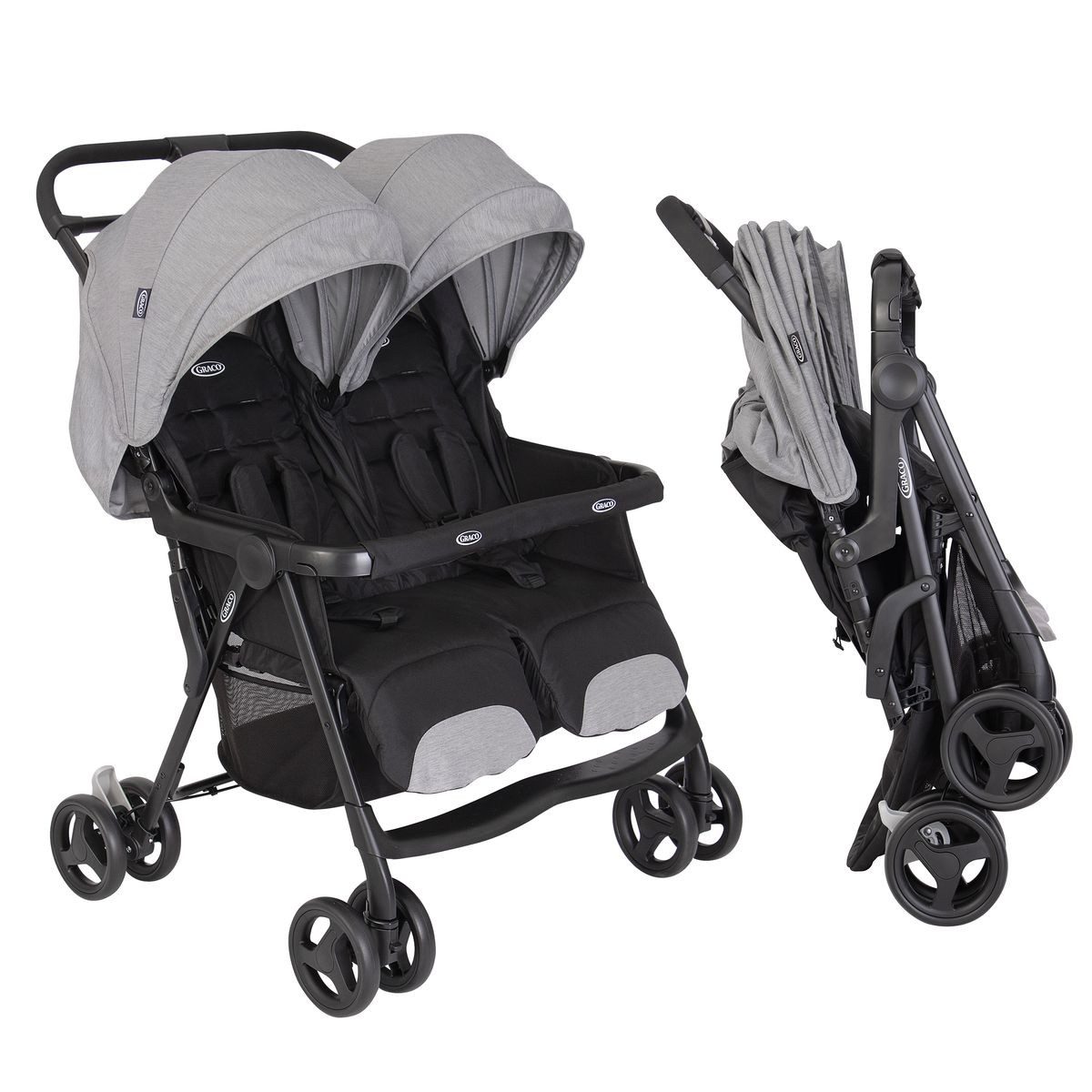 Im DuoRider Geschwister- & Zwillingswagen von Graco können 2 Kinder von der Geburt bis ca. 3 Jahre (max. 15 kg pro Kind) nebeneinander Platz nehmen. Die Rückenlehnen lassen sich stufenlos und unabhängig voneinander bis in eine bequeme Liegeposition verstellen. Der enthaltene Regenschutz sorgt auch an stürmischen und nassen Tagen dafür, dass Deine Kinder trocken bleiben.