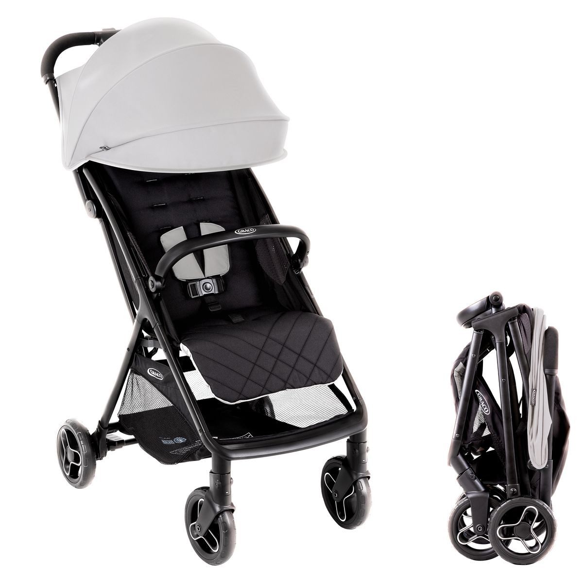 Lieferumfang | Graco Buggy & Sportwagen Myavo - Steeple Gray abnehmbarer Schutzbügel Sonnenverdeck mit UV-Schutz 50+ Regenverdeck Einkaufskorb |