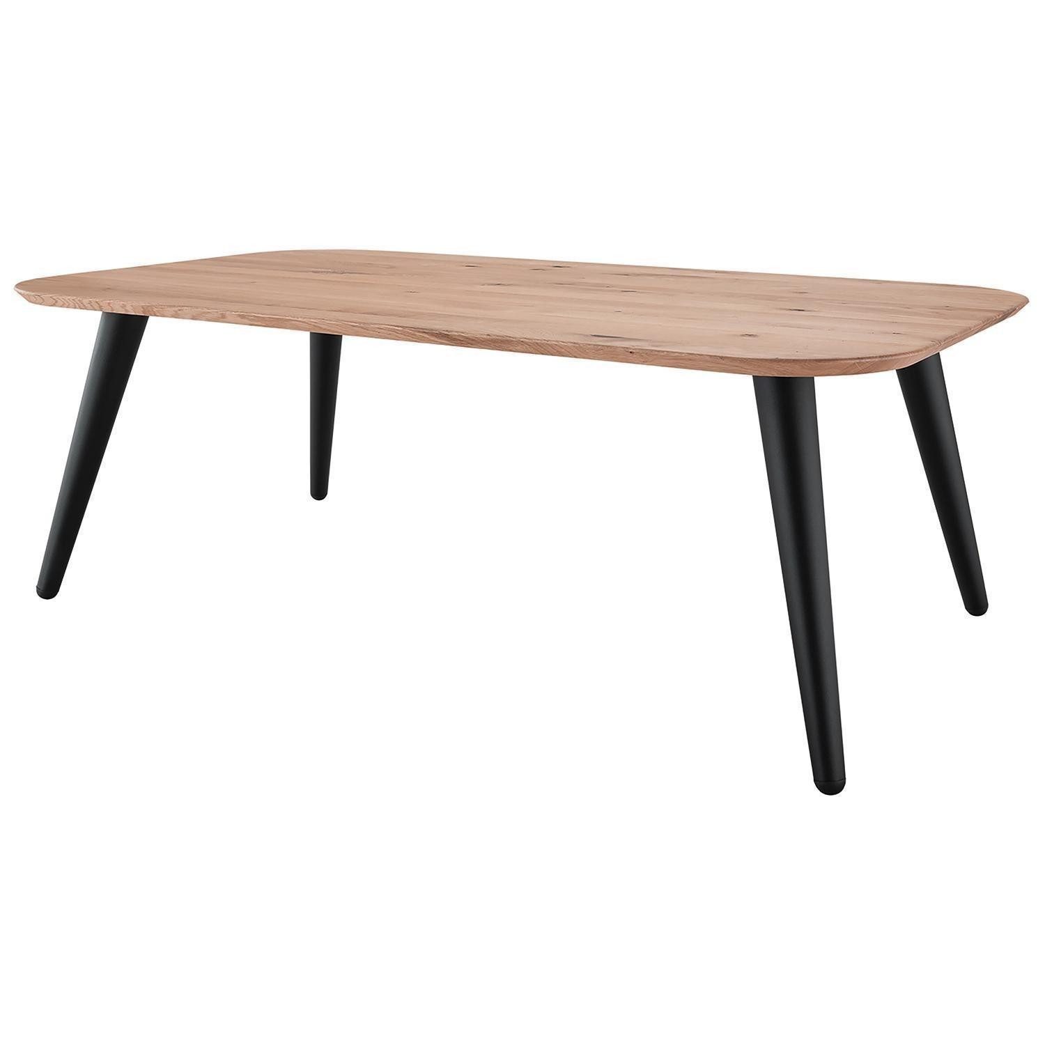 Der Couchtisch NOAH der Marke Gradel verfügt über eine Tischplatte aus massivem Wildeichenholz mit geölter Oberfläche und angeschrägten Tischkanten. Das Gestell besteht aus Metall in Schwarz. Die Abmessungen betragen 120 cm in der Breite, 43 cm in der Höhe und 70 cm in der Tiefe.