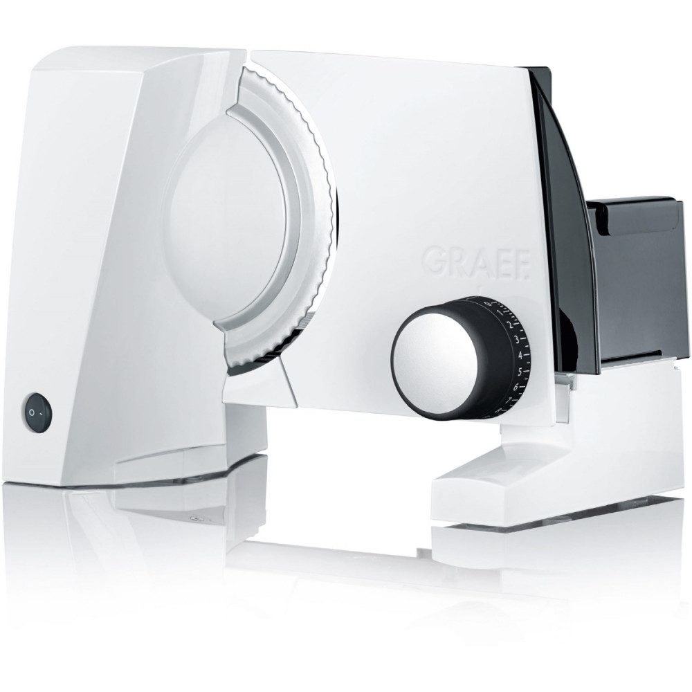 Впередe Vorteile | Dank des kompakten Designs findet der S10003 in jeder Küche Platz. Er eignet sich für junge Familien ebenso wie für Studenten – aber letztlich für jeden, der Wert auf frische, gesunde Ernährung legt. Die Metallmaschine überzeugt vor allem durch ihre Robustheit. Ihr energiesparender Eco Power Motion arbeitet zugleich stark und leise mit 45 Watt und einer Spitzenschneidleistung von 170 Watt. Der MiniSlice Aufsatz ist die optimale Ergänzung zum Sliced Kitchen Всеsschneider: Gemüse, Obst oder Salami, sogar kleine Kartoffeln oder Pilze werden in hauchdünne, ovale Scheibe geschnitten –für optimale Garzeiten beim Kochen. Edelstahl-Wellenschliffmesser mit Safety-Verschluss für schnellen und sicheren Messerwechsel: Ideal für Brot, Wurst oder Käse; Messerabdeckplatte für optimale Schneidergebnisse; Stabiler und leichtgängiger Schlitten mit Kindersicherung. Mit dem großen, leicht laufenden Schlitten können Nutzer das Schneidgut exakt an das 170 mm breite, rostfreie Edelstahlmesser mit Wellenschliff heranführen. Das Gerät lässt sich stufenlos auf Schnittstärken von bis zu 2 cm einstellen. Nicht zuletzt glänzt der Graef Всеsschneider S10003 aus der SKS 100-Serie durch seine zeitlose Form. Zur Funktionalität kommt der Sicherheitsaspekt. Ein spezieller Safety-Verschluss ermöglicht es, das Messer zur Reinigung schnell und gefahrlos abzunehmen. Zudem lässt sich der Schlitten durch die Kindersicherung vor dem Messer verriegeln. |
