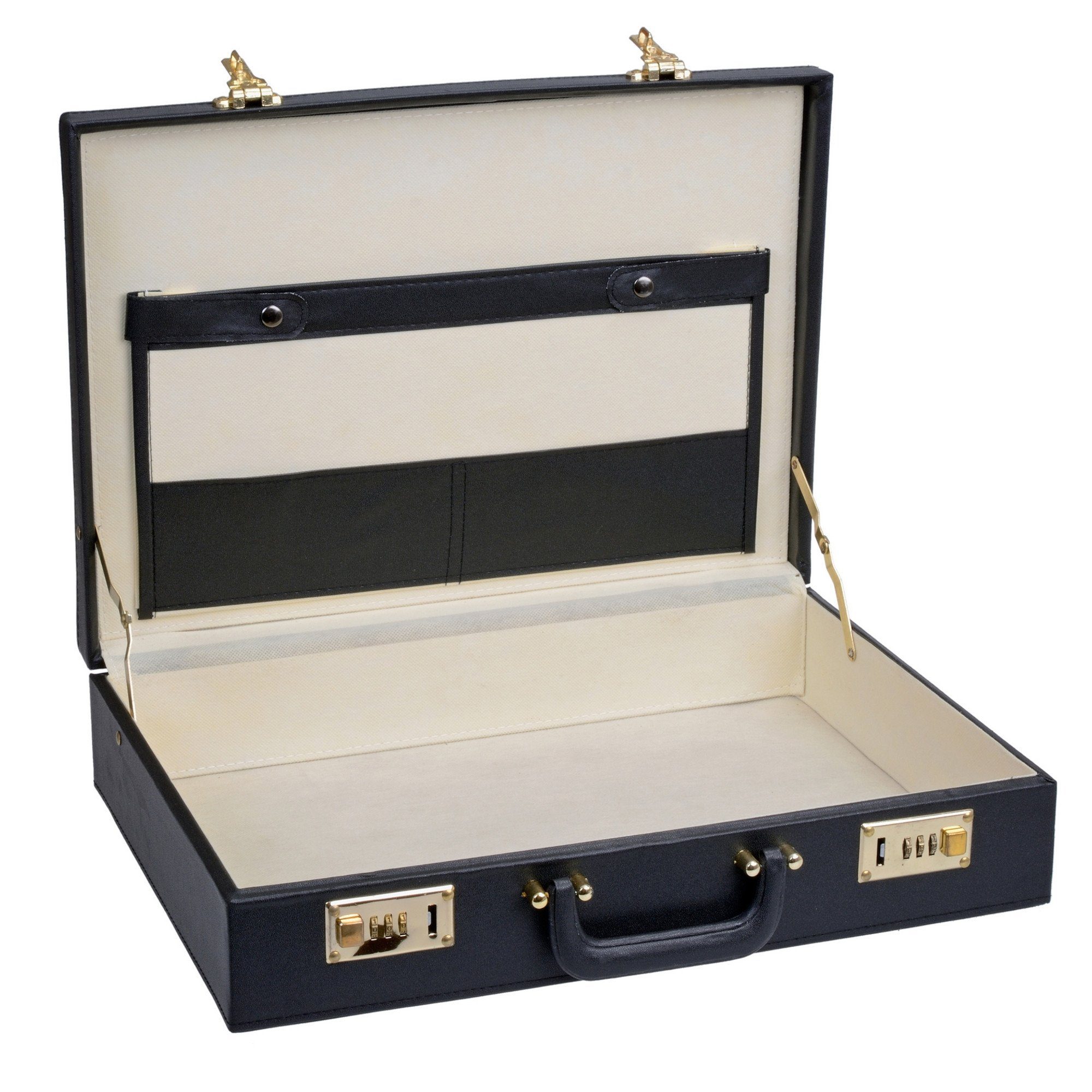 Robuster Attaché- und Aktenkoffer aus Kunstleder, mit Zahlenschloss und Dokumentenfach. Das Zahlenschloss mit drei Ziffern lässt sich auf die gewünschte Geheimzahl einstellen und schützt den Kofferinhalt vor ungewolltem Zugriff. Im Dokumentenfach können Sie Ihre Unterlagen sortiert und sicher transportieren.