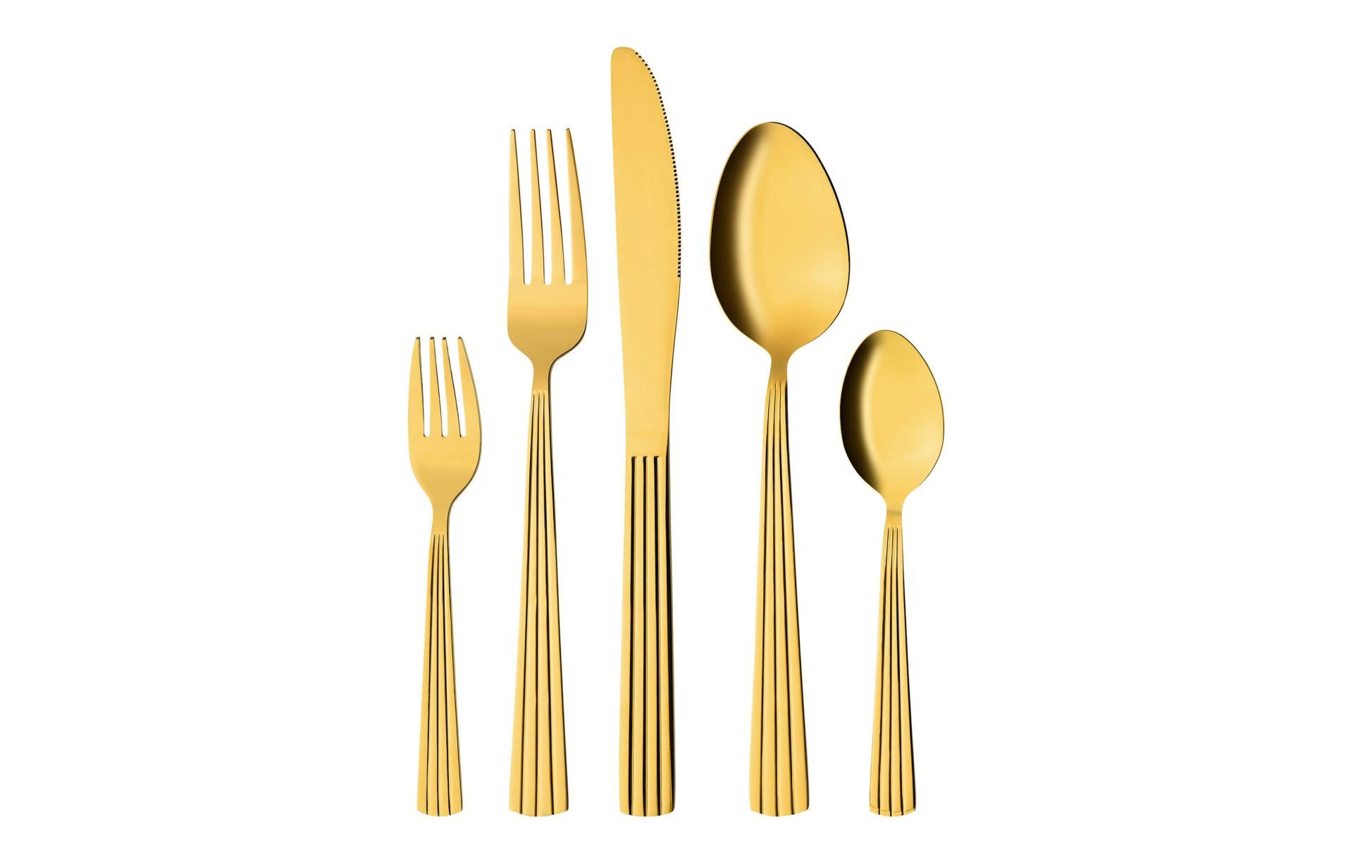 Das GRÄWE Besteckset Athen besticht durch klare Linien und ein zeitloses Design, das jedem Tisch eine luxuriöse Atmosphäre verleiht. Gefertigt aus hochwertigem Edelstahl mit goldener Beschichtung, überzeugt es nicht nur durch seine glänzende Optik, sondern auch durch seine Robustheit und Spülmaschinenfreundlichkeit.