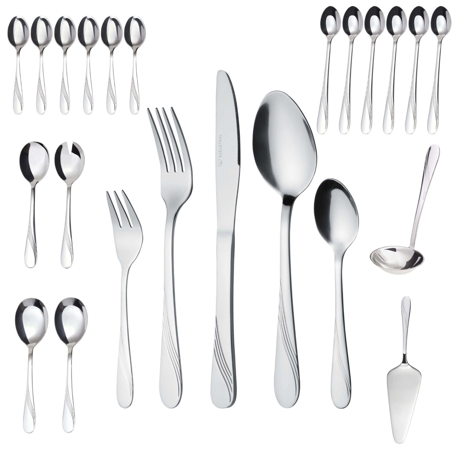 Klare Linienführung, zeitloses Design. Bei diesem Set erhalten Sie ein einfaches Besteck mit schönem Dekor für Ihre Tafel. Das Besteck ist ideal für den täglichen Gebrauch, ob zu Hause oder im Wohnwagen/Ferienhaus.