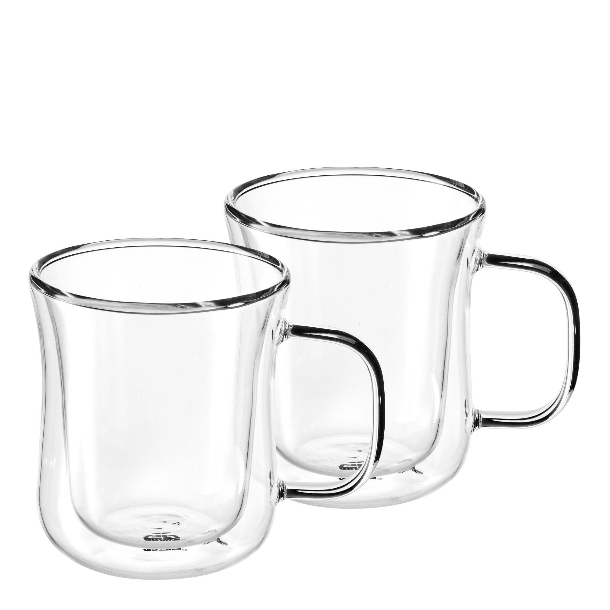Doppelwandige Thermogläser mit Henkel, 2er Set, geschwungen, Randvoll-Volumen: 250 ml, Nutzvolumen ca. 210 ml