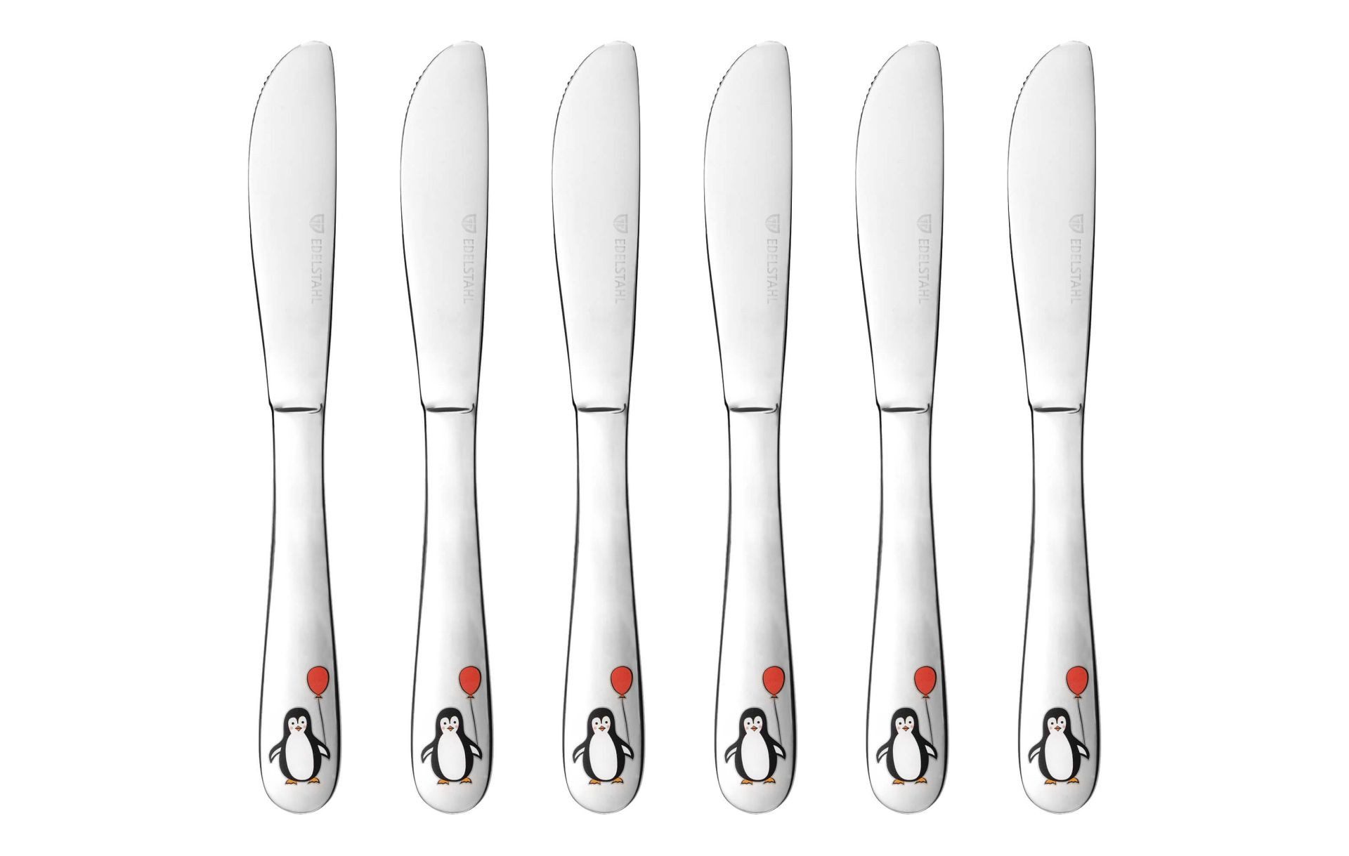 Kindgerechtes Design: Die Messer sind speziell für kleine Hände entwickelt. Mit abgerundeten, breiten Klingen bieten sie höchste Sicherheit und erleichtern den Umgang mit Besteck – ideal für erste selbstständige Essversuche.