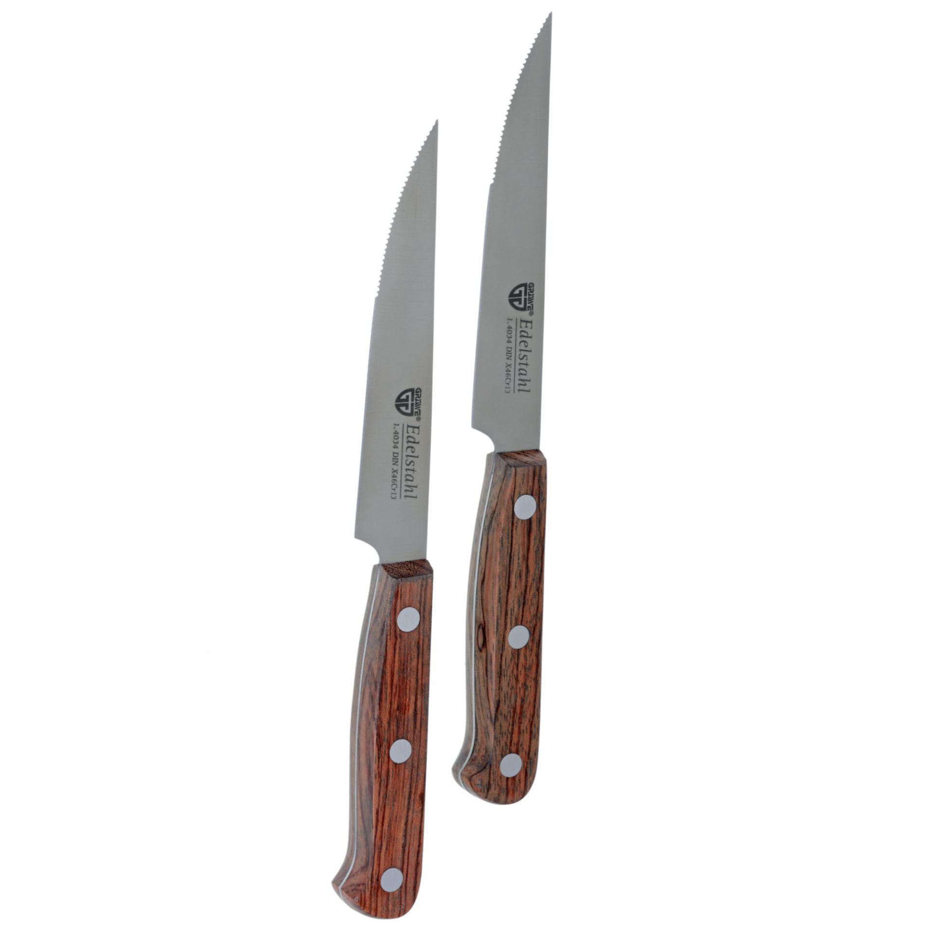 Durchgehende Stahlteile mit hochwertigen Palisander-Holzgriffen und 3 Edelstahlnieten vollenden diese hochwertigen Steak-Messer.