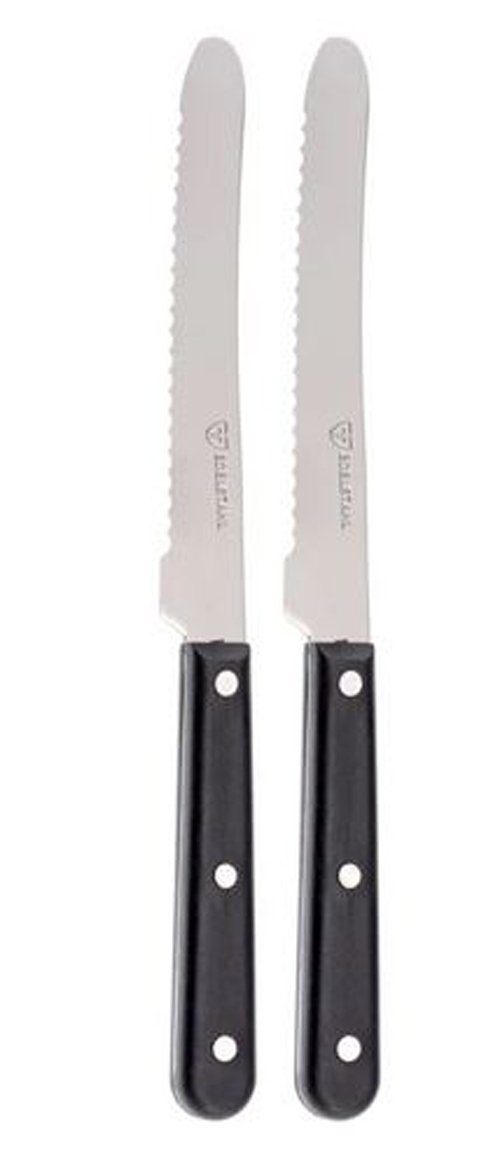 Tafelmesser mit Wellenschliff Angenehmer Griffkomfort Material: gehärtete Edelstahlklinge Griff: Kunststoff, genietet Farbe: schwarz Spülmaschinengeeignet