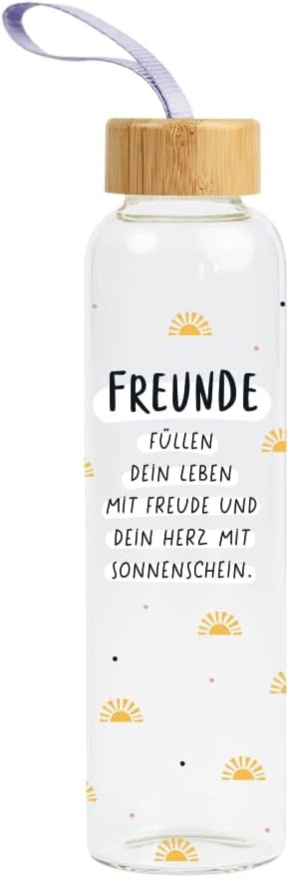 Trink dich fit! Eine tolle und wiederverwendbare Glasflasche für unterwegs, beim Sport oder im Büro. Liebevoll von uns gestaltet macht sie dein tägliches Wassertrinken zum stylishen Highlight. Vor dem ersten Gebrauch sorgfältig ausspülen. Keine heißen Getränke einfüllen. Regelmäßig mit warmem Wasser, Seife und einer Flaschenbürste säubern.
