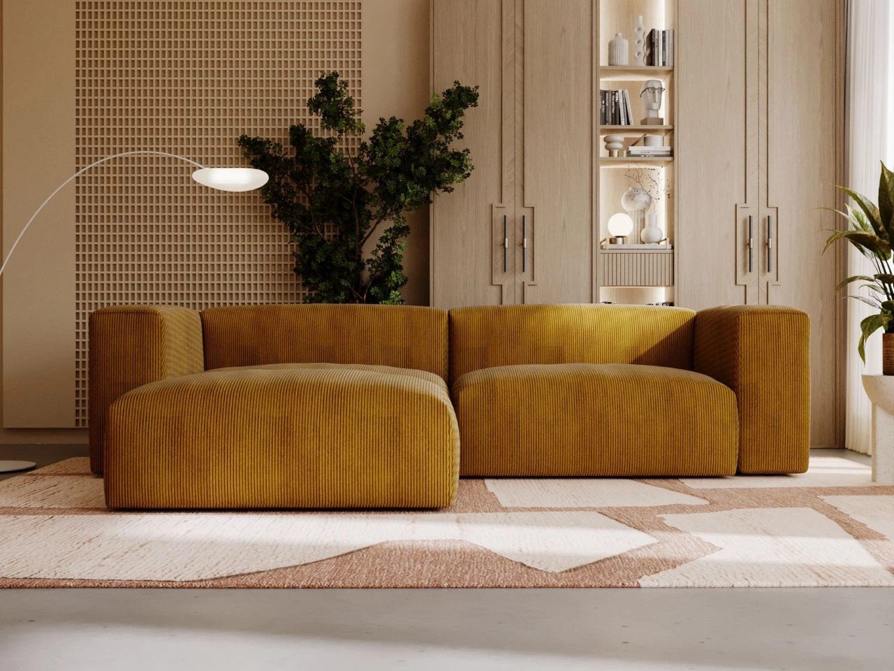 Das Cord-Ecksofa Landi ist die ideale Wahl für alle, die modernes Design mit Funktionalität und Komfort verbinden möchten. Seine markanten Linien verleihen dem Interieur einen besonderen Charakter und schaffen eine behagliche Atmosphäre.