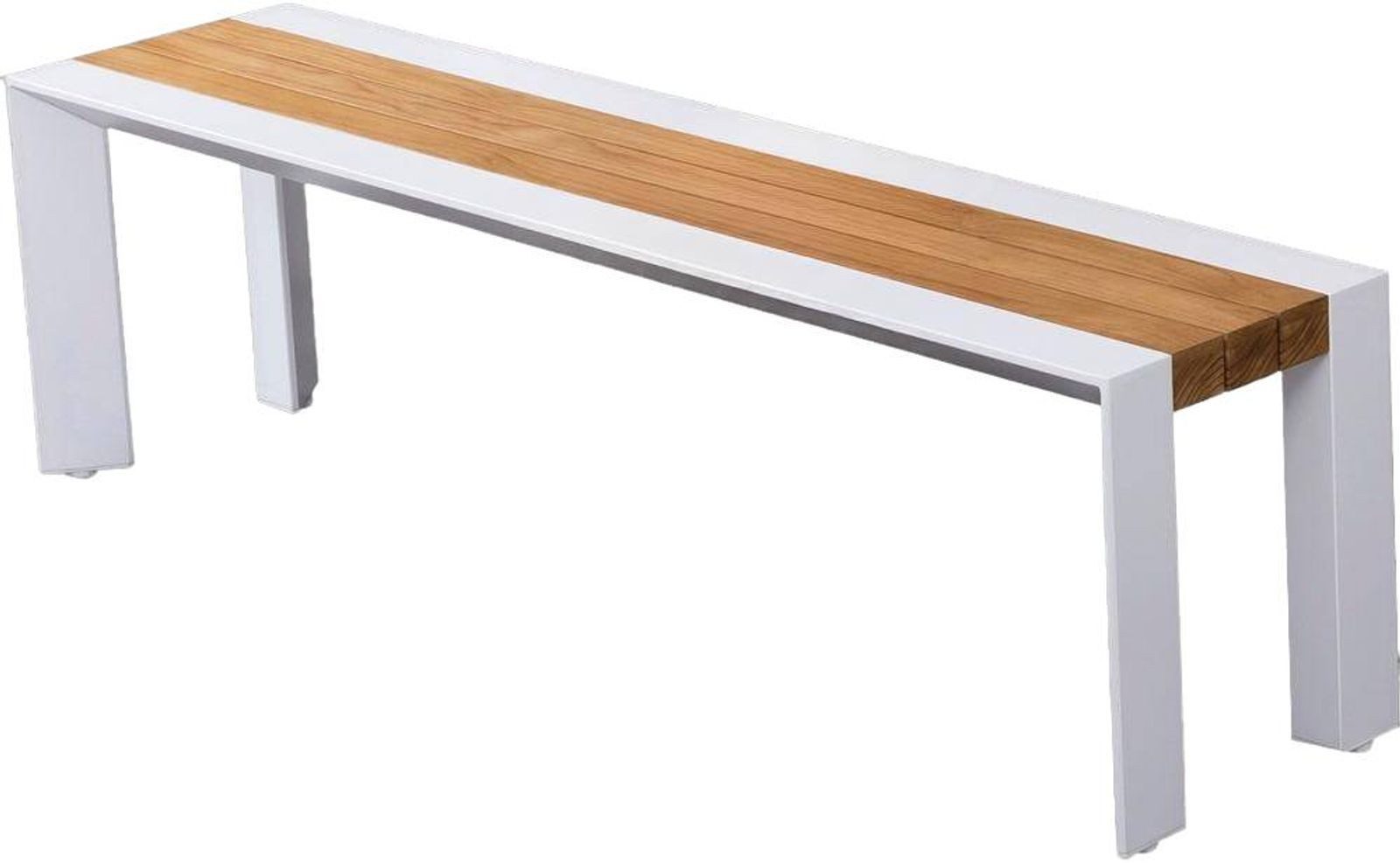 Die Bank VENICE ohne Rückenlehne ist eine schlichte und dennoch elegante Sitzgelegenheit für den Außenbereich. Sie ist aus hochwertigem, pulverbeschichtetem weißem Aluminium gefertigt und verfügt über Non-Wood-Elemente, die das Erscheinungsbild von Holz nachahmen, aber gleichzeitig langlebig und wetterbeständig sind. Diese Bank bietet eine bequeme Sitzmöglichkeit für Ihren Garten, Ihre Terrasse oder Ihren Balkon und ist ideal, um die Natur zu genießen. Ihr zeitloses weißes Finish verleiht ihr eine frische und moderne Optik, die zu verschiedenen Außenumgebungen passt. Die VENICE Bank ohne Rückenlehne ist eine praktische und stilvolle Ergänzung für Ihren Outdoor-Bereich.