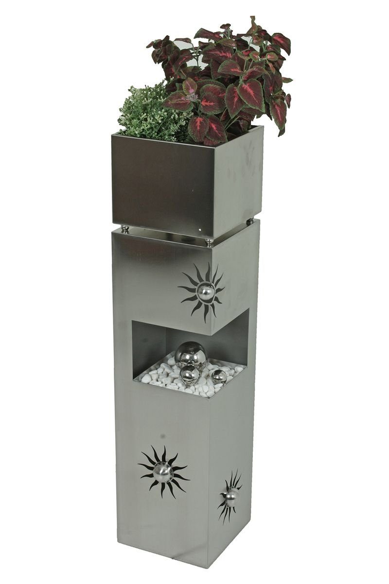 Edelstahl Pflanzsäule mit Sonnenmotiv