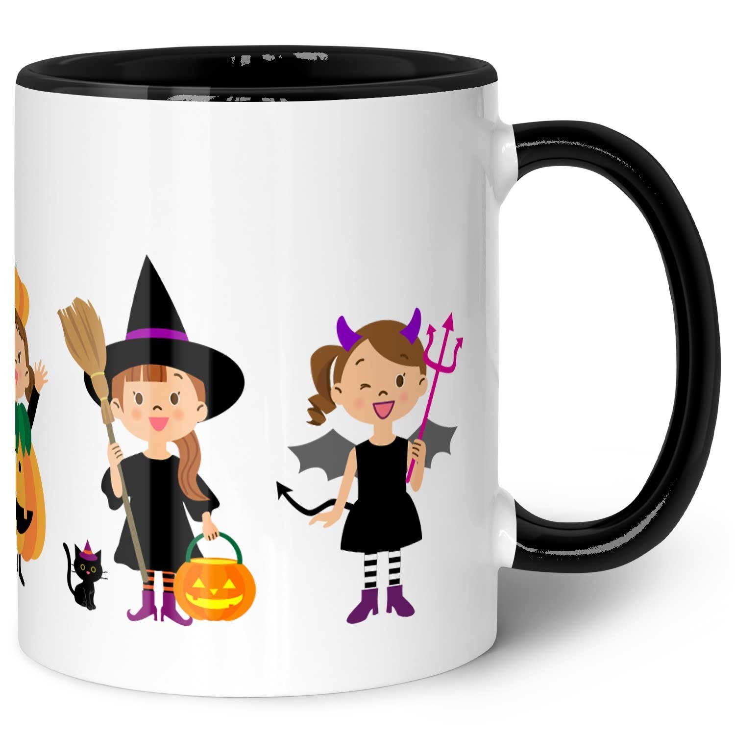 GRAVURZEILE Tasse mit Motiv im Kinderkostüme Design, Keramik, Farbe: Schwarz & Weiß
