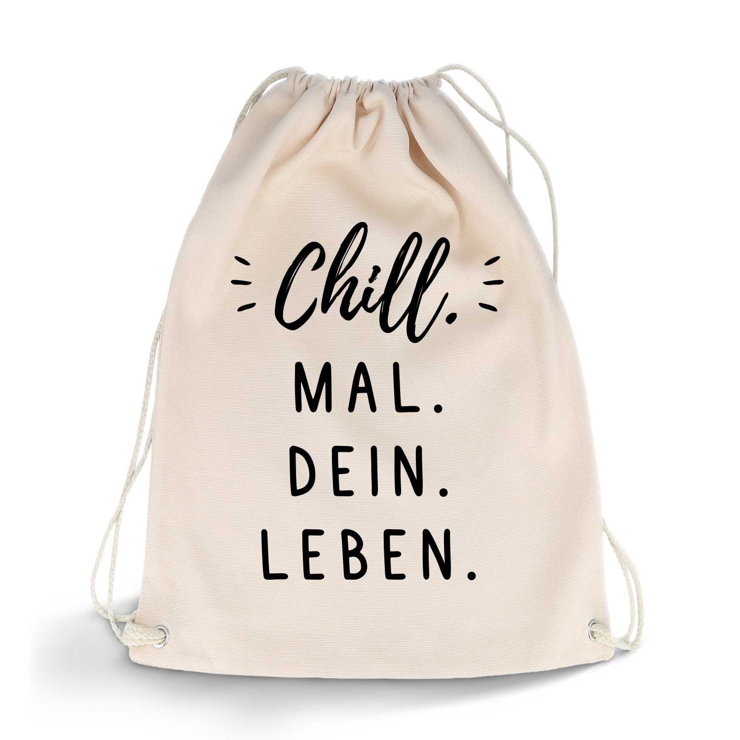 Eigenschaften Bedruckter Turnbeutel mit Spruch Chill mal dein Leben