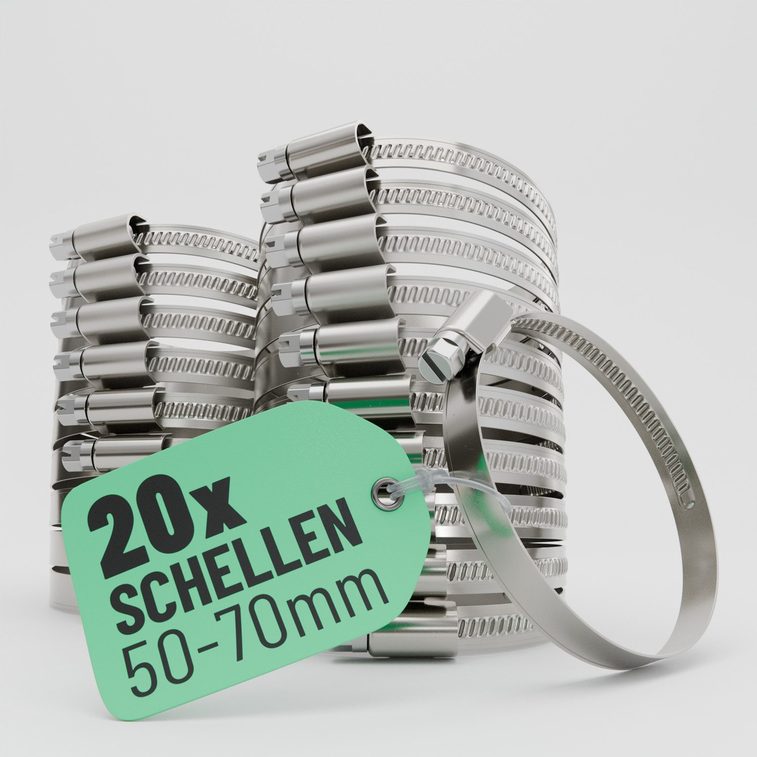 Schlauchschelle 20x Schlauchschellen Edelstahl 50-70 mm - Einstellbare Schlauchschelle