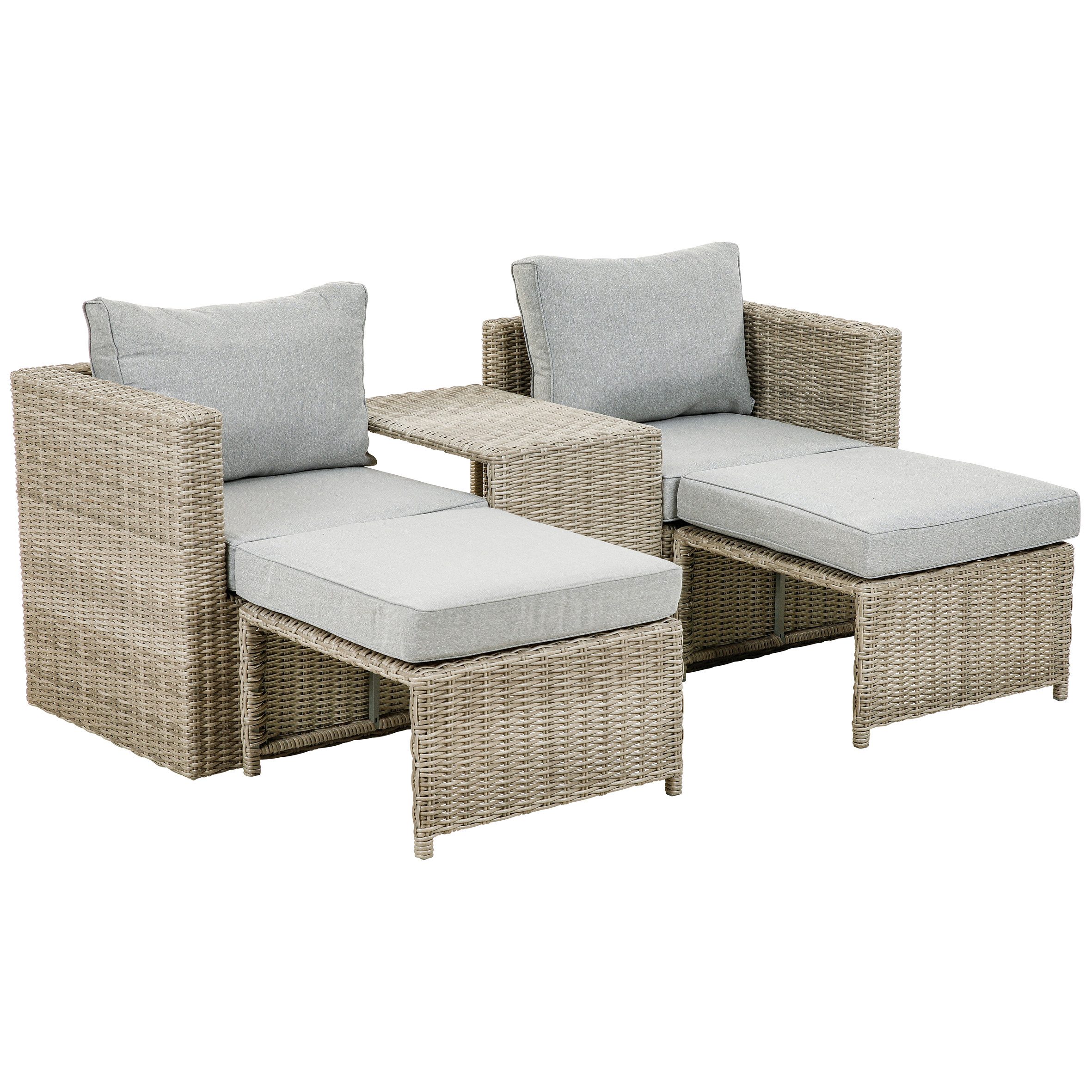 • Edles Balkonlounge-Set aus hochwertigem Rattan in Beige/Grau – wetterbeständig und langlebig