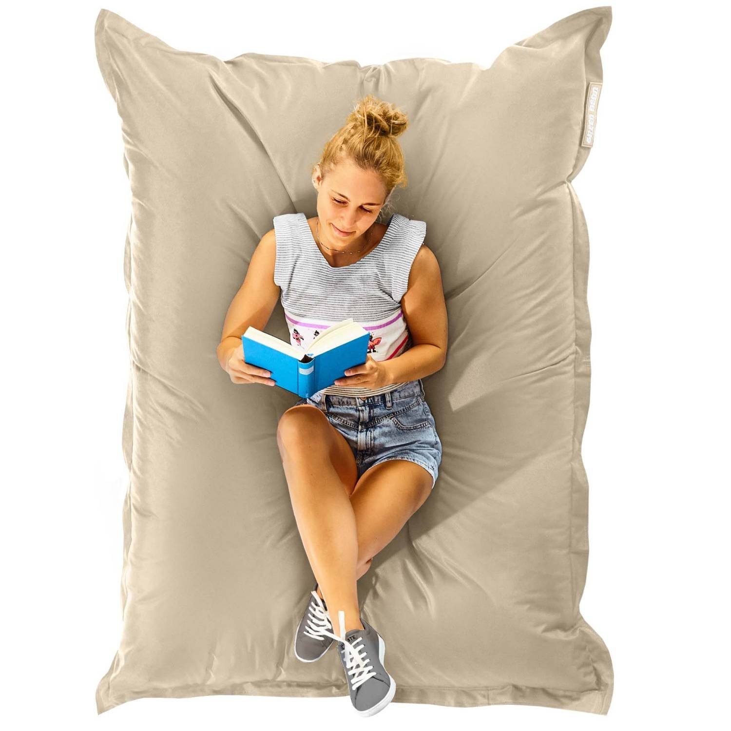 Der Sitzsack ist anfangs schön hoch, nach mehrmaligem drauf sitzen oder liegen wird er allerdings sehr flach. Auch ein kräftiges auf schütteln hilft hier leider nicht. Bequem ist er trotzdem. Das Wasser am Outdoorstoff perlt wunderschön ab. Innen drin bleibt er unversehrt.