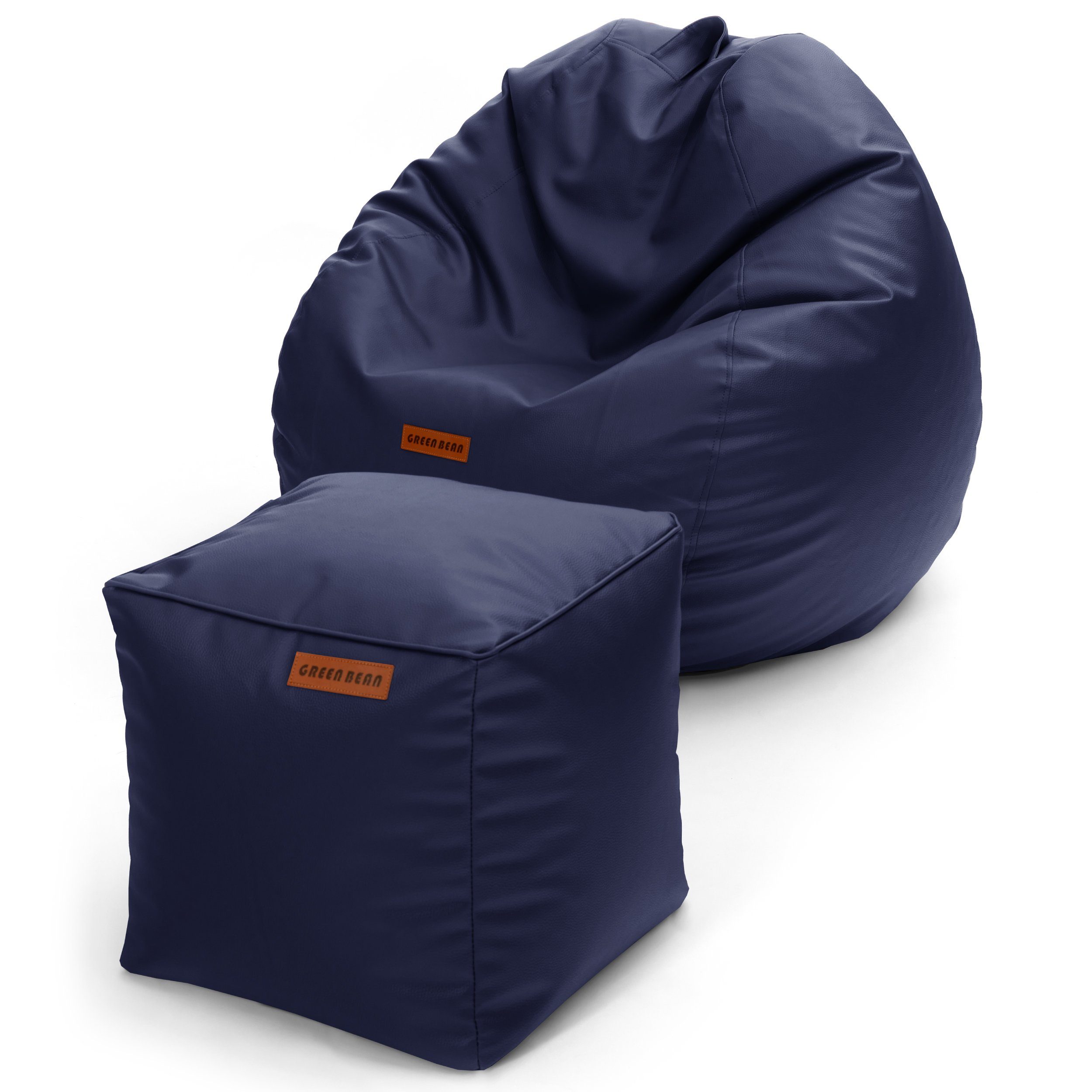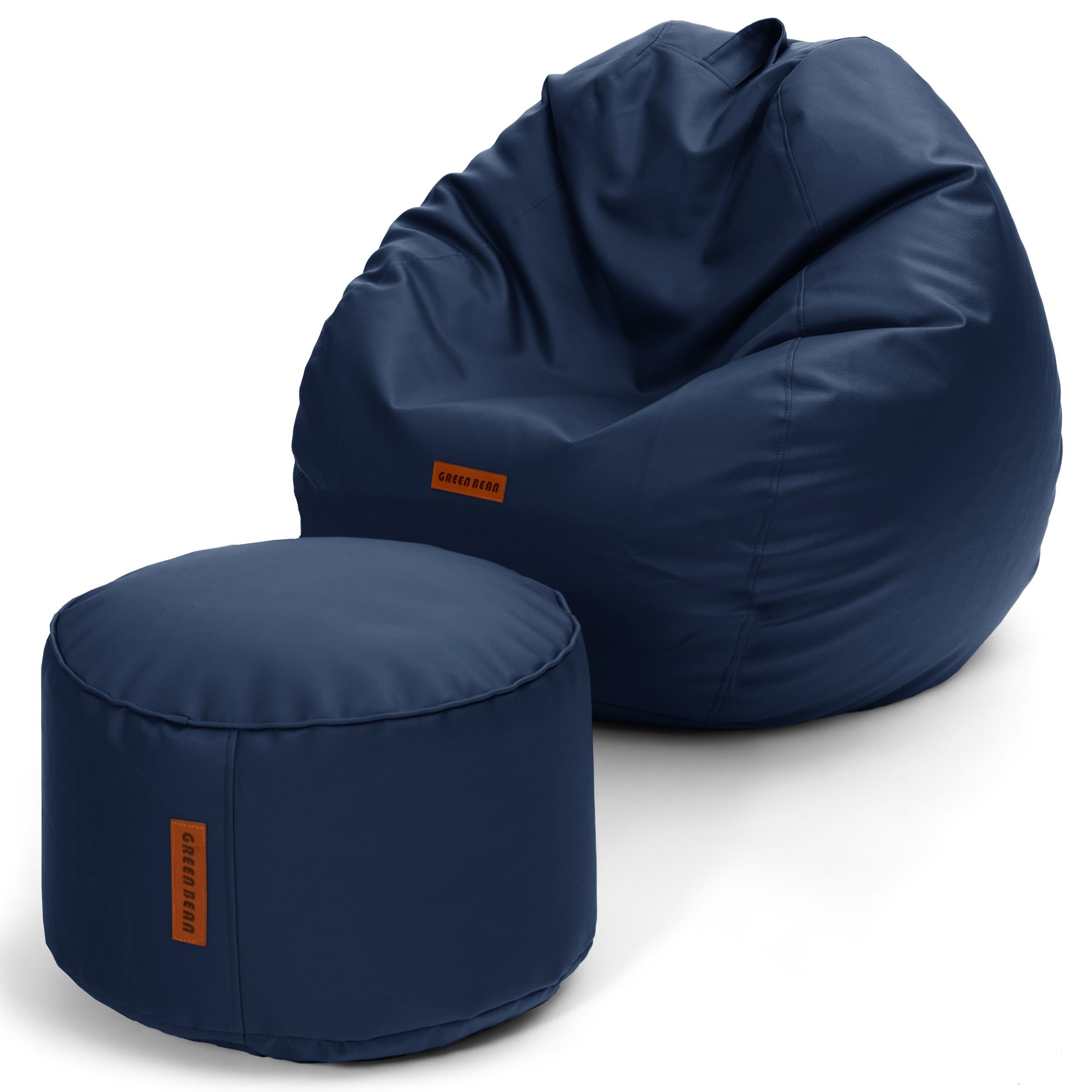 Erlebe Komfort mit stilvollem Kunstleder Sitzsack-Set inkl. Fußhocker. Размер 90x70 cm bietet Kindern und Erwachsenen Platz zum Entspannen. Passender Pouf in 3 Вариантыn.