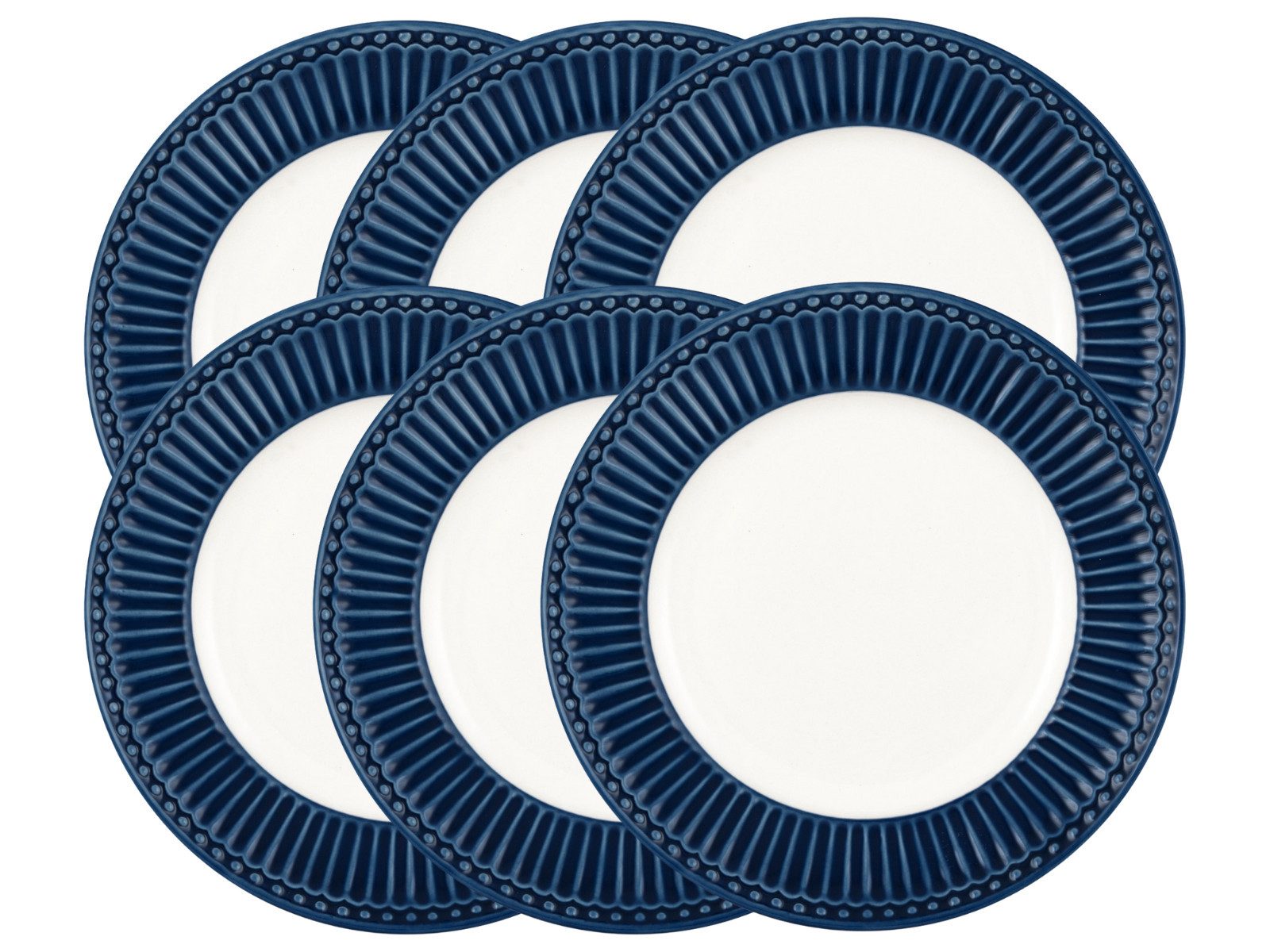 Das Set umfasst sechs Teller mit der charakteristischen Rillenstruktur der Alice-Serie. Der tiefe Blauton sorgt für einen stilvollen, klassischen Look und lässt sich wunderbar mit anderen Farben der Kollektion kombinieren.