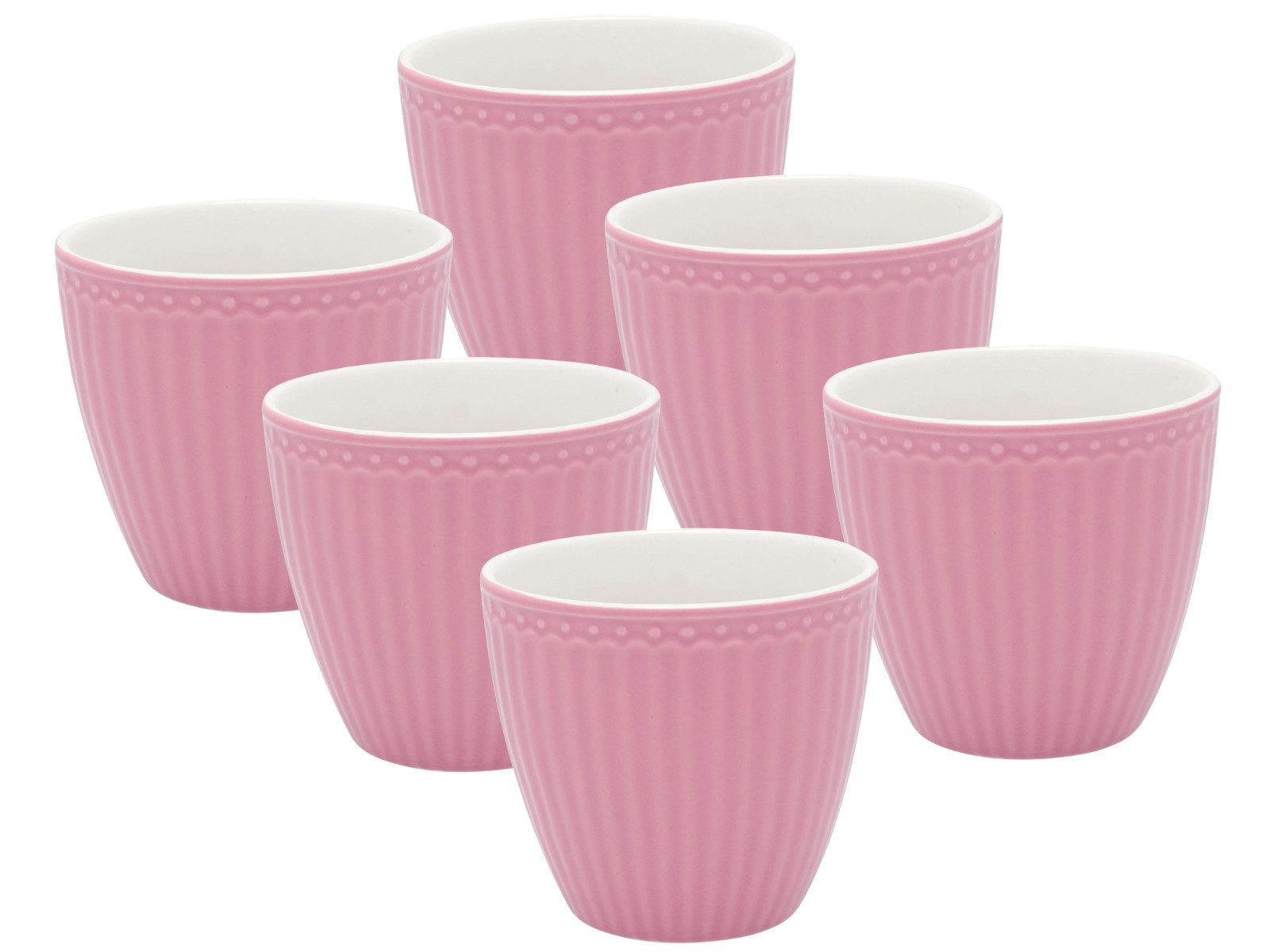 Das 6teilige Set der Greengate Alice Latte Cups in Dusty Rose bringt romantischen Charme und sanfte Farben auf deinen Tisch. Mit einem Fassungsvermögen von 0,3 l sind die Becher ideal für Latte Macchiato, Cappuccino oder eine gemütliche Tasse Tee – perfekt für stilvolle Kaffeepausen.