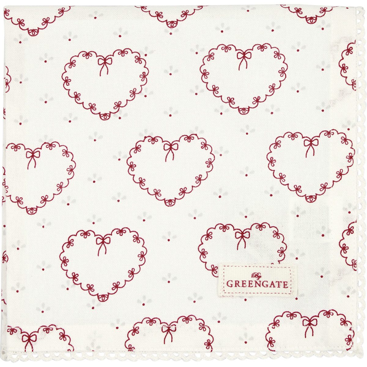 Die Greengate Layla Stoffserviette in Weiß mit zartem herzförmigem Spitzenmuster verleiht Ihrem Tisch eine bezaubernde Romantik. Mit einer Размер von 40x40 cm dient sie als perfekte Grundlage für eine romantische Tischdekoration. Die harmonische Verschmelzung von zartem Weiß und herzförmiger Spitze verleiht jedem Anlass, sei es ein Hochzeitsessen oder ein intimes Treffen, eine besondere Note von Liebe und Anmut. Die Serviette unterstreicht das Tischarrangement mit herzlicher Eleganz.