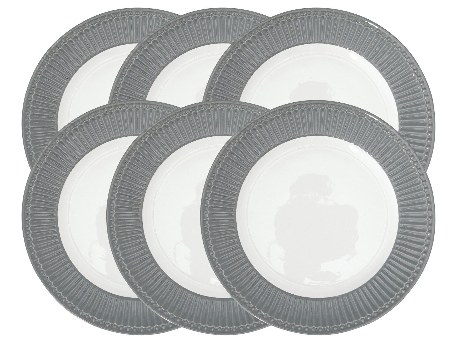 Das 6teilige Set der Greengate Alice Speiseteller in der dezenten Farbe Stone Grey überzeugt mit zeitloser Eleganz und klarer Formensprache. Mit einem Durchmesser von 26,5 cm bieten die Teller ausreichend Platz für Hauptgerichte und sind ideal für den Alltag oder festliche Anlässe.