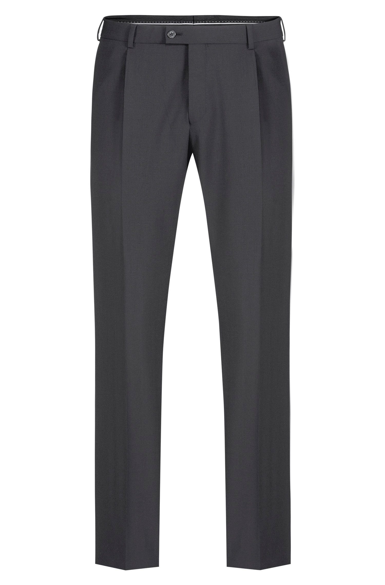 • Regular Fit - gerade geschnitten • Bundfalten • elastischer Bund • schmaler Beinverlauf • 2 Seitentaschen • 2 Gesäßtaschen • Vorderhosenfutter • Fußweite 36 cm / Gr. 50 • Schrittlänge 82 cm / Gr. 50 • Maschinenwäsche • Bi-Stretch • Wasser- und Schmutzabweisend • Premium Line • OEKO TEX® • Obermaterial: 60% Schurwolle, 36% Polyester, 4% Elasthan • Futter: 100% Polyester • Muster: uni • Farbe: 111 Anthrazit