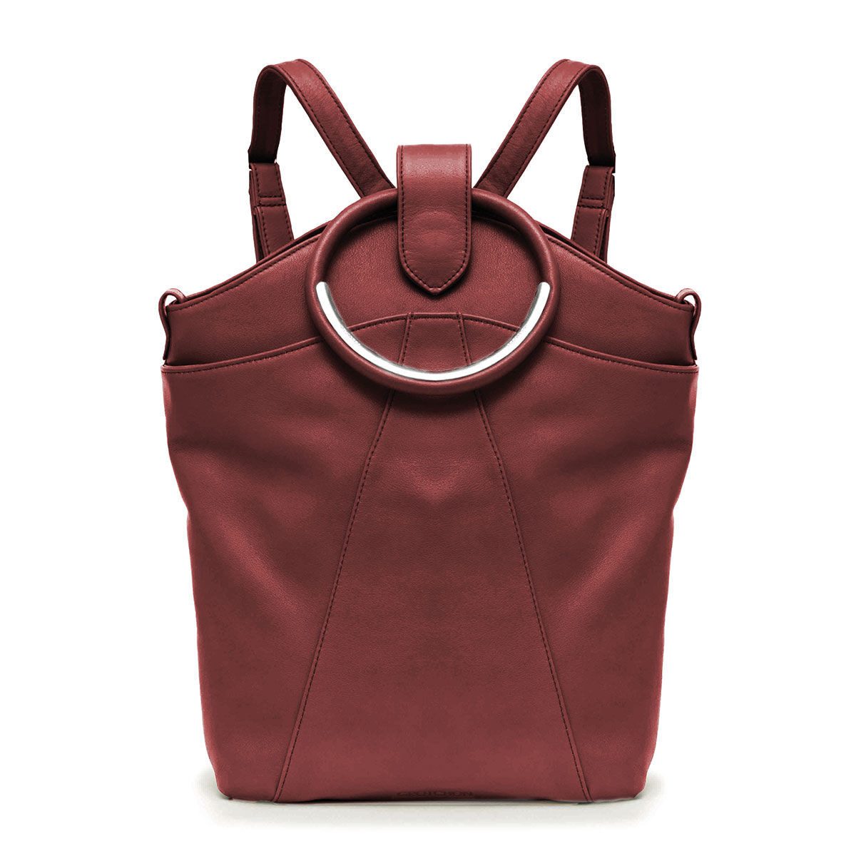 Der formschöne "Maple Metal Backpack" greift das 3-in-1-Prinzip auf: tragen Sie ihn wahlweise als Rucksack, Umhängetasche oder auch mal am eleganten Metall-Kurzgriff in der Hand. Aus geschmeidigem Kalbsleder gefertigt bietet diese wandelbare Alltagstasche neben dem geräumigen Hauptfach mit mehreren Innentaschen auch noch ein großzügiges Vorfach. Beide werden mit einem Reißverschluss sicher verschlossen werden. Vollendet wird der Rucksack mit einem feminin geformten, lederbezogenen Ring mit filigranem Metall-Element. Der Maple Metal Backpack ist ein außergewöhnlich stilvoller Rucksack der sich von sportlich bis "alltags-elegant" vielseitig Ihrer Garderobe anpasst.