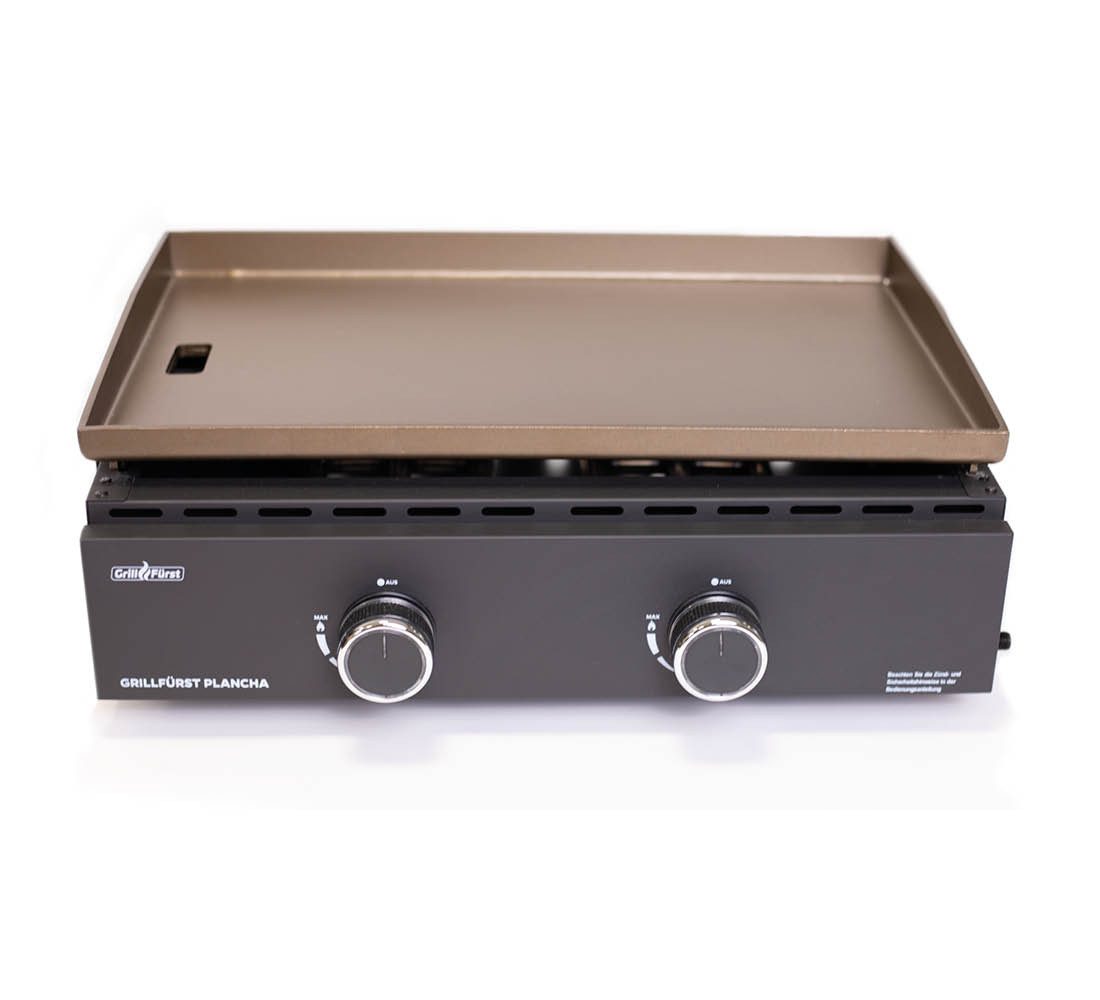 Grillfürst Camping-Gasgrill Grillfürst Plancha Grill - 2 Brenner und Edelstahl Plancha