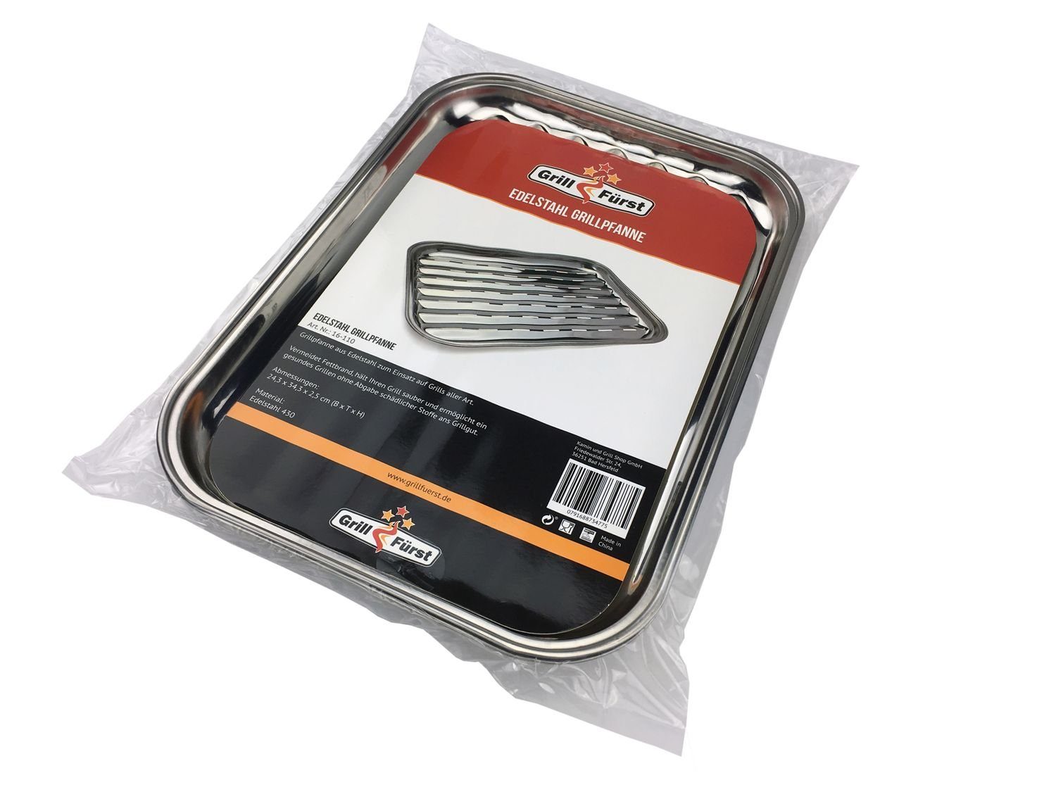 Bezeichnung:Grillfürst Grillpfanne Edelstahl 24 x 34 cm Artikelnummer:16-110 Material:Edelstahl Materialstärke:~1 mm Abmessungen:24 x 34 cm