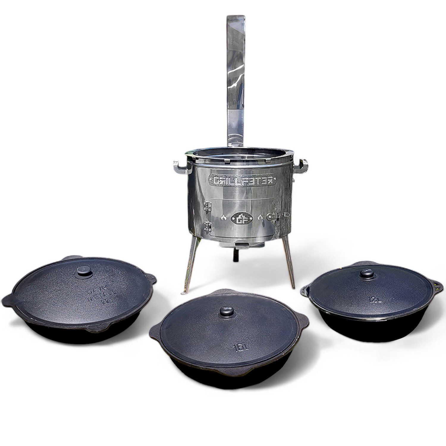 Utschak Konfigurator Timur aus Edelstahl mit Rauchrohr Utschak D45 cm mit Kazan selbst zusammenstellen