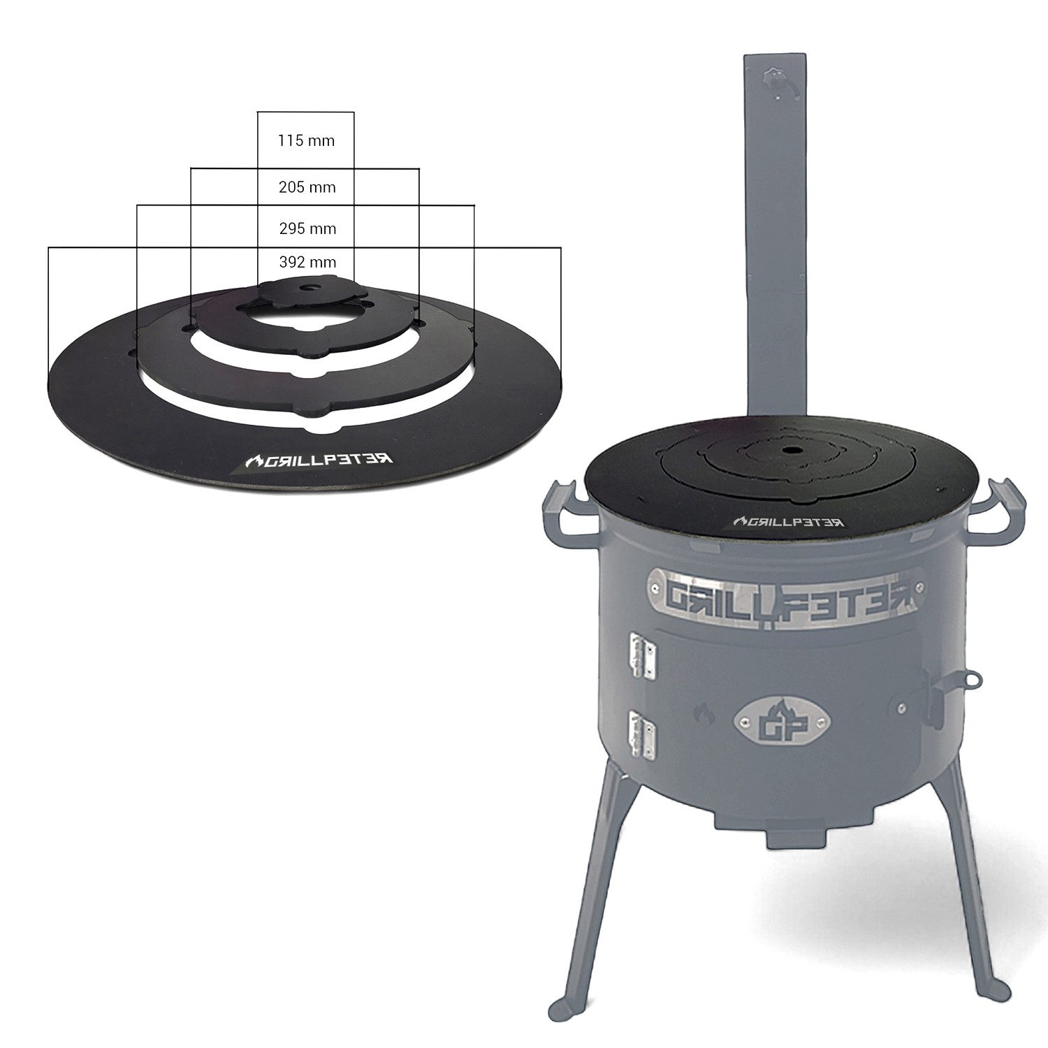 Mit unserem Kochring könnt ihr verschiedene Kazans auf einem Utschak nutzen! Die Ringe in der Mitte der Grillplatte lassen sich einfach entfernen, sodass ihr den passenden Durchmesser für euren Kazan erreicht. Gleichzeitig könnt ihr die äußeren Flächen als Plancha-Platte verwenden – perfekt für vielseitiges Kochen im Freien!