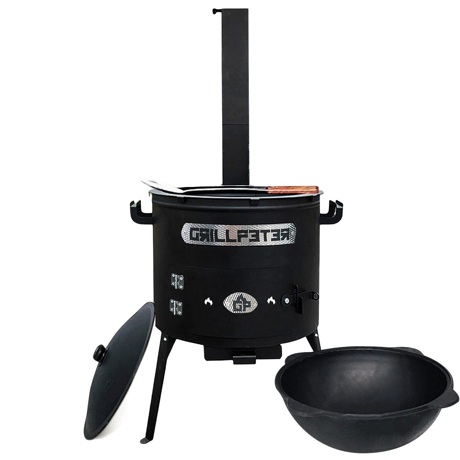 Im Lieferumfang sind das Gehäuse, abnehmbare Füße, ein Anpassungsring für 12 Liter Kazan, eine Tür, ausziehbare Ascheablage und das 2-teilges Rauchabzugsrohr. Der Utschak kann schnell und einfach zusammengebaut werden und ist leicht zu transportieren.