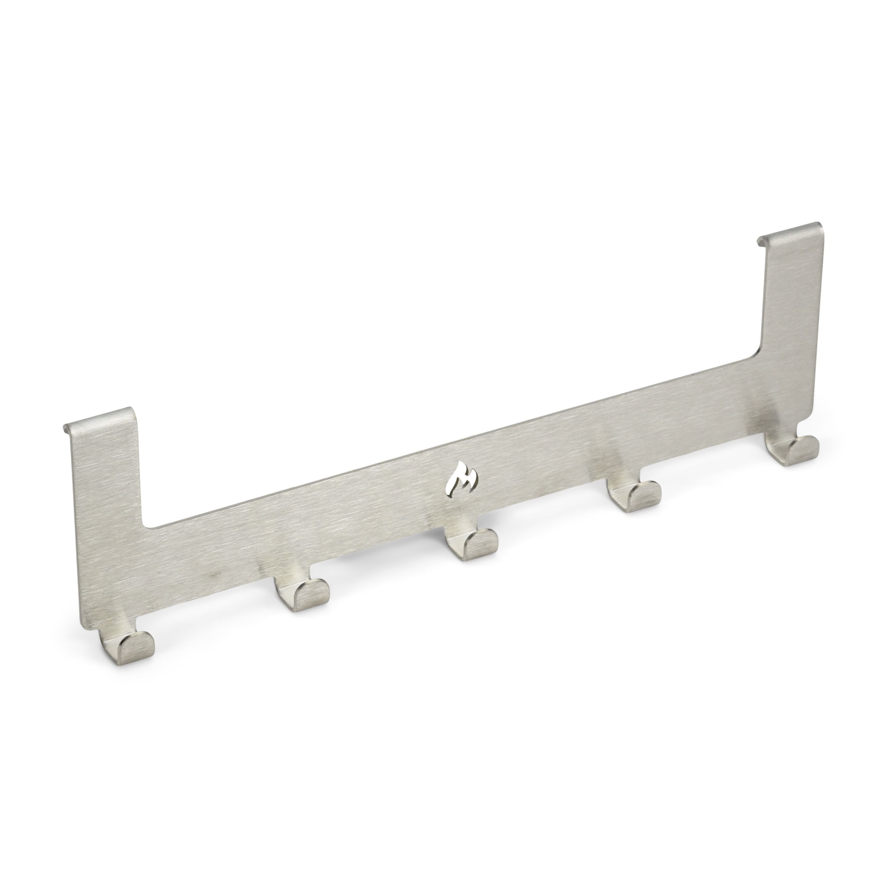 Die Hakenleiste aus Edelstahl kann in den Pellethopper (Pellet Behälter) deines Traeger Grills eingehängt werden. An fünf stabile Haken kannst du damit die Grillzange, Handschuhe und dein Grillzubehör hängen.