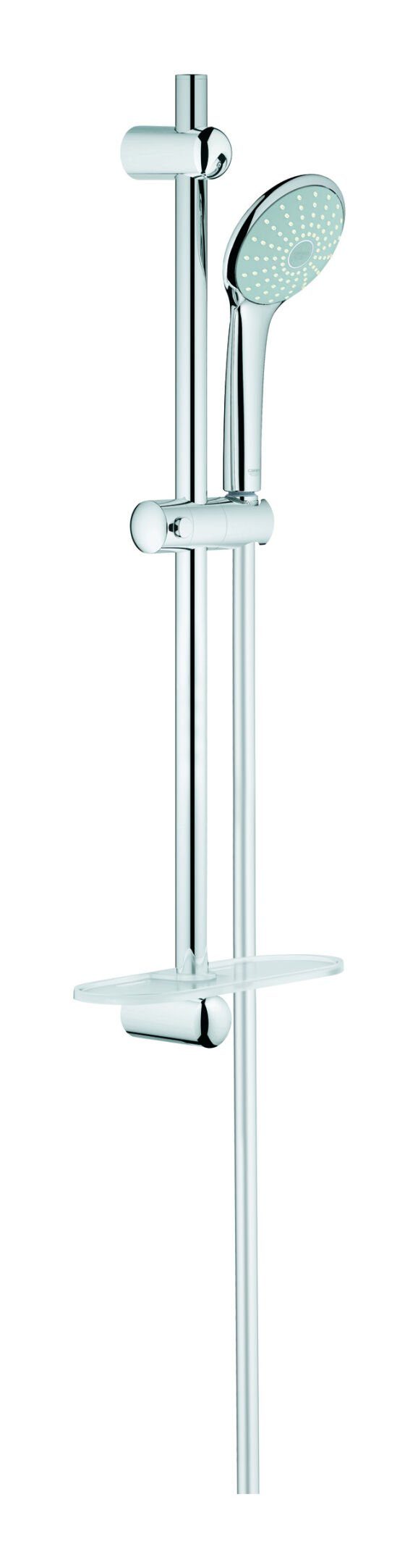 Lieferumfang | Handbrause Euphoria 110 Mono (27 265) Brausestange Euphoria 600 mm (27 499) Brauseschlauch Silverflex 1.750 mm (28 388) GROHE EasyReach Ablage (27 596) |