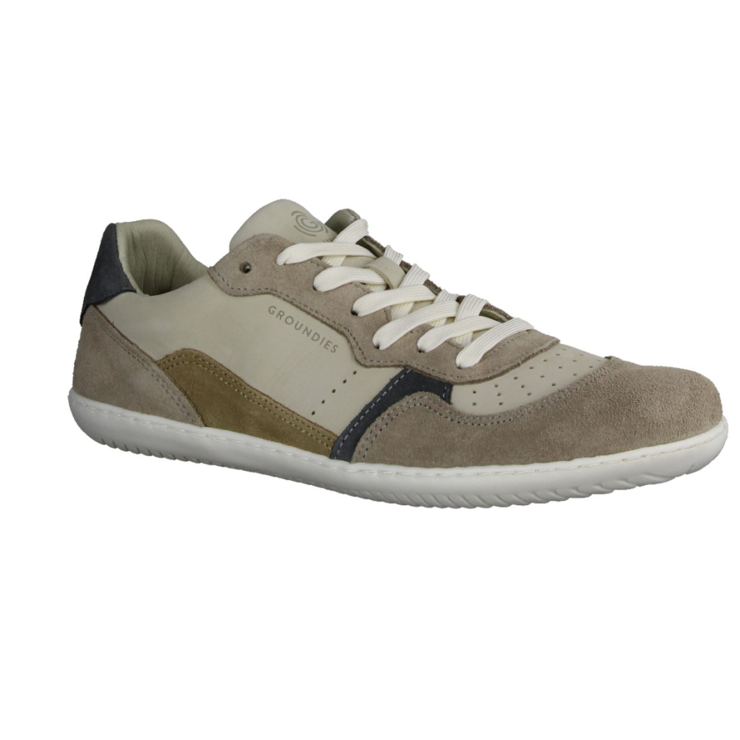 Der Barfußsneaker Groundies Nova GO1 in Beige ist ein stylisher und gleichzeitig funktioneller Schuh für alle, die Barfußlaufen lieben. Das Obermaterial besteht aus einem hochwertigem Ledermix, das für eine angenehme Passform und Atmungsaktivität sorgt. Die innovative TrueSense GO1 Laufsohle ermöglicht ein natürliches Abrollen des Fußes und sorgt für ein unvergleichliches Barfußgefühl. Der Sneaker ist in einem gelungen Farbmix gehalten, was ihm einen modernen und frischen Look verleiht. Das atmungsaktive OnSteam-Innenfutter aus Mikrofaser machen den Nova GO1 zu einem vielseitig einsetzbaren Barfußsneaker, der sich problemlos zu vielen Outfits kombinieren lässt. Egal ob im Alltag, beim Sport oder beim Ausgehen, mit diesem Sneaker bist du immer gut angezogen. Eine anatomische Zehenbox sorgt für mehr Raum im Vorfußbereich. Dank der Barfußtechnologie von Groundies wird der Fuß perfekt unterstützt und gestärkt, sodass du Läufe und lange Spaziergänge ohne Einschränkungen genießen kannst. Der Barfußsneaker ist nicht nur ein modisches Accessoire, sondern auch ein echtes Wohlfühl-Erlebnis für die Füße. Die Schuhe fallen größengerecht aus.