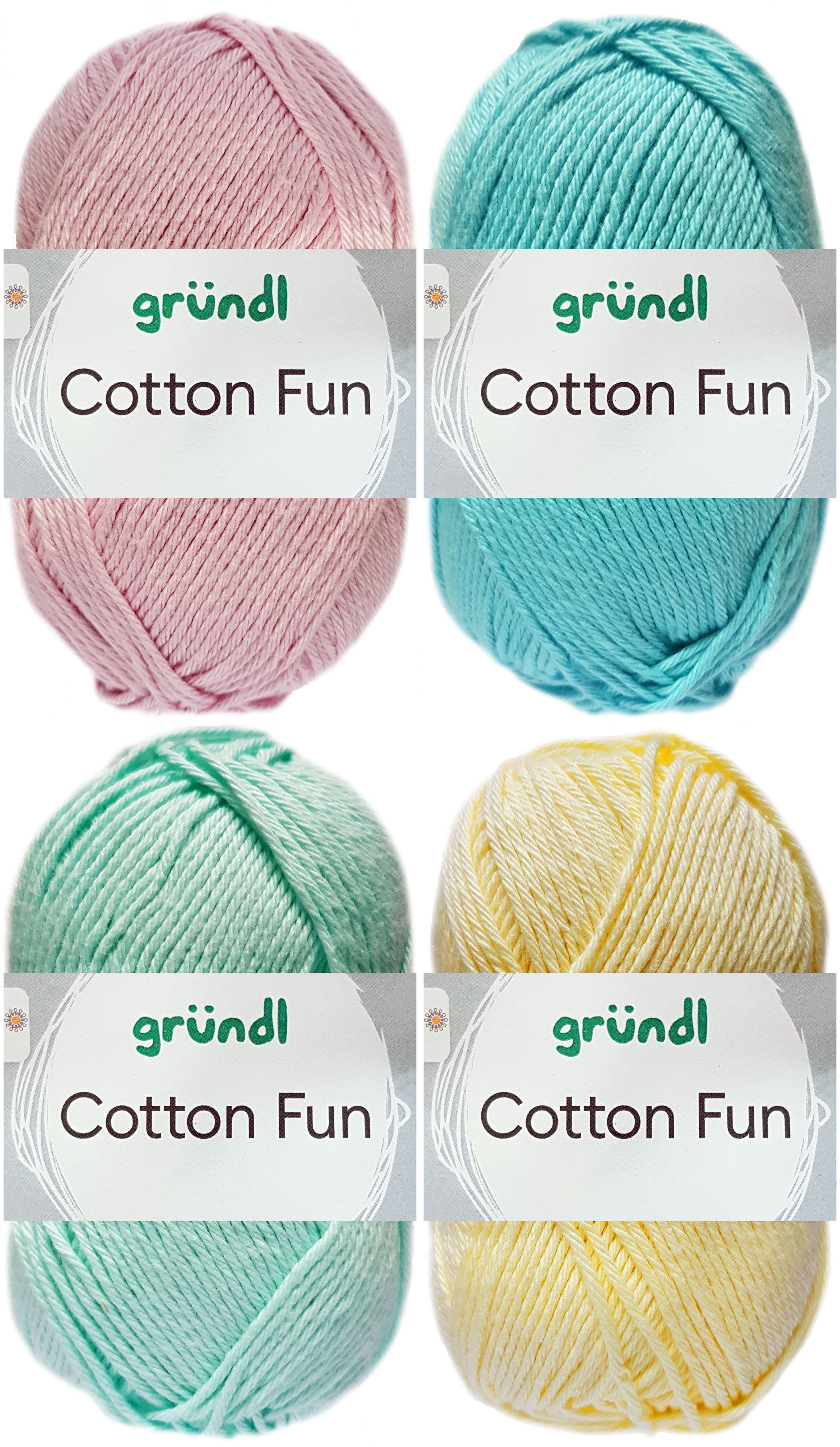 Wir bieten 4x Cotton Fun Wolle Schulgarn, Topflappengarn, Häkelgarn in einen Set