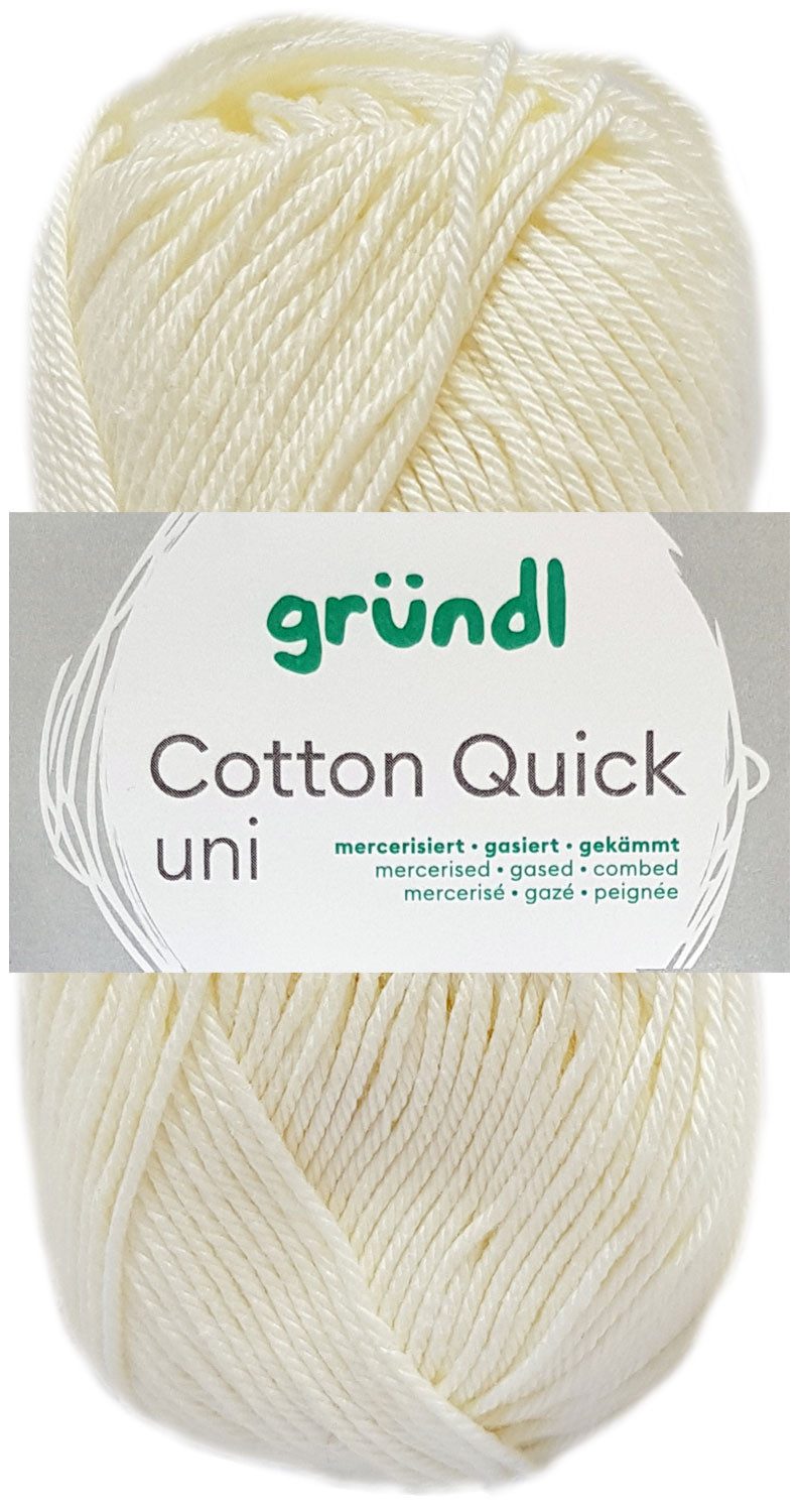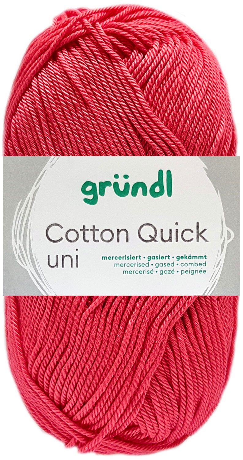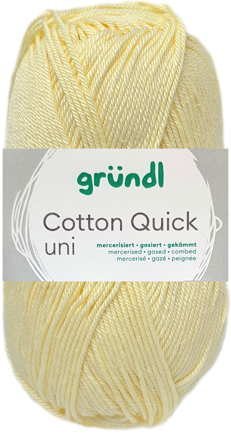 Gründl Wolle Cotton Quick ist ein sehr strapazierfähiges und langlebiges Garn. Es fühlt sich sehr weich auf der Haut an und wirkt gleichzeitig kühlend. Da die Wolle aus 100% Baumwolle besteht, kratzt sie nicht auf der Haut und ist zugleich in der Lage Feuchtigkeit der Haut.
