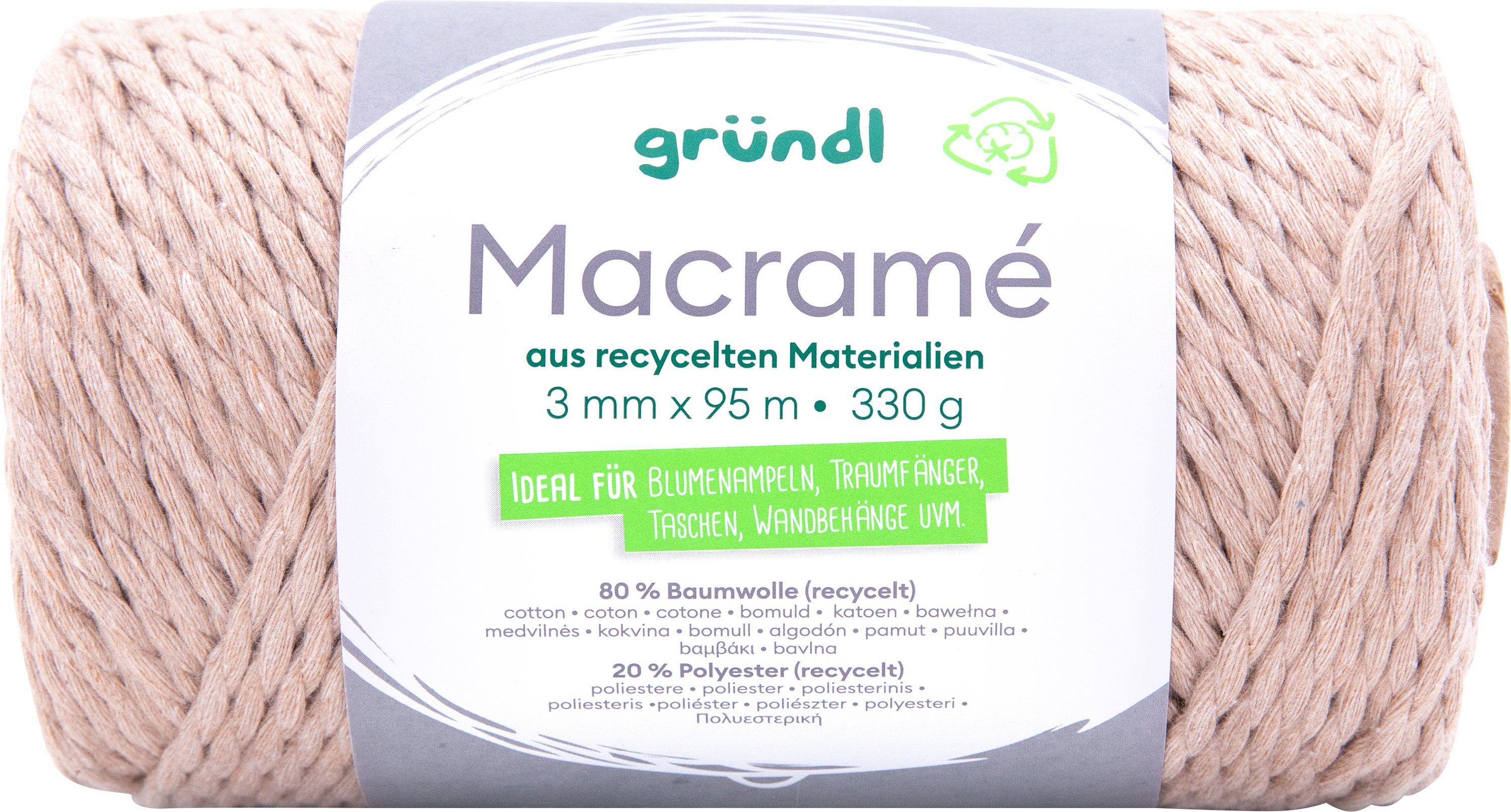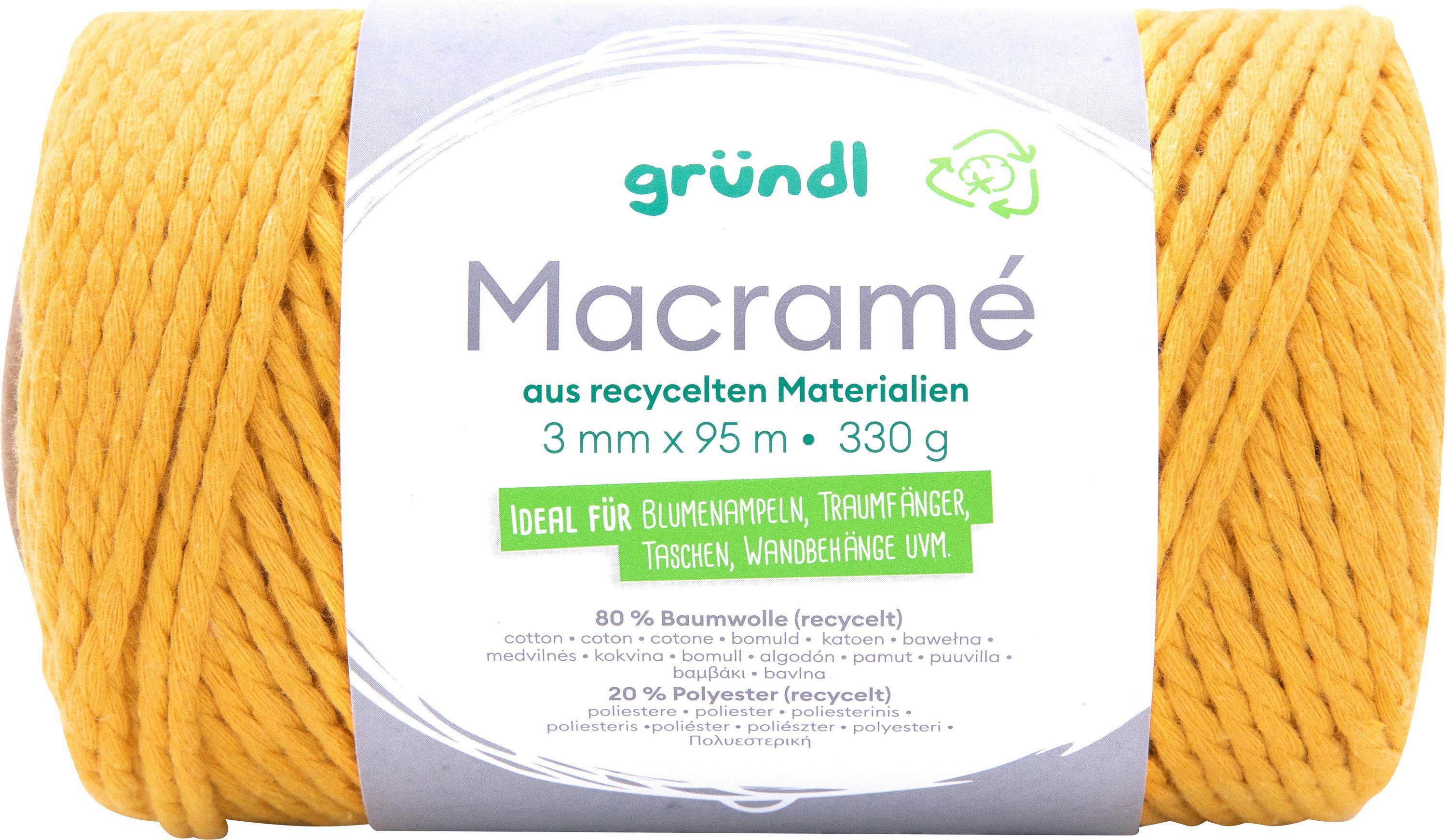 Gründl Baumwollkordel 'Macramé' mit einer Длина von ca. 95 m, einer Stärke von ca. 3 mm und einem Gewicht von ca. 330 g. Die 2-fach verzwirnte Kordel eignet sich für die verschiedensten Makramee- und Bastelprojekte. Super für die Gestaltung von Blumenampeln, Einkaufsnetzen oder Dekorationen in Metallringen.
