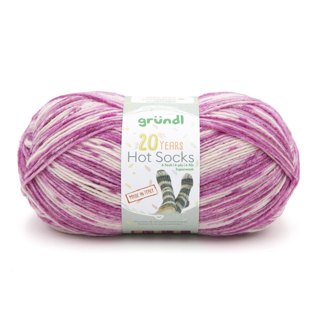 Limited Edition! EXTRA: Tolles Gewinnspiel in der Banderole Aus italienischer Sockenwolle, strapazierfähiges, maschinenwaschbares Sockengarn. Hohe Festigkeit des Sockengarnes durch 4/6/8 fach - Verzwirnung und dadurch gute Haltbarkeit der Socken. Die Faser ist superwash ausgerüstet, ist daher problemlos in der Waschmaschine bei 40 C° im Schonwaschgang waschbar, das Sockengarn verfilzt nicht.
