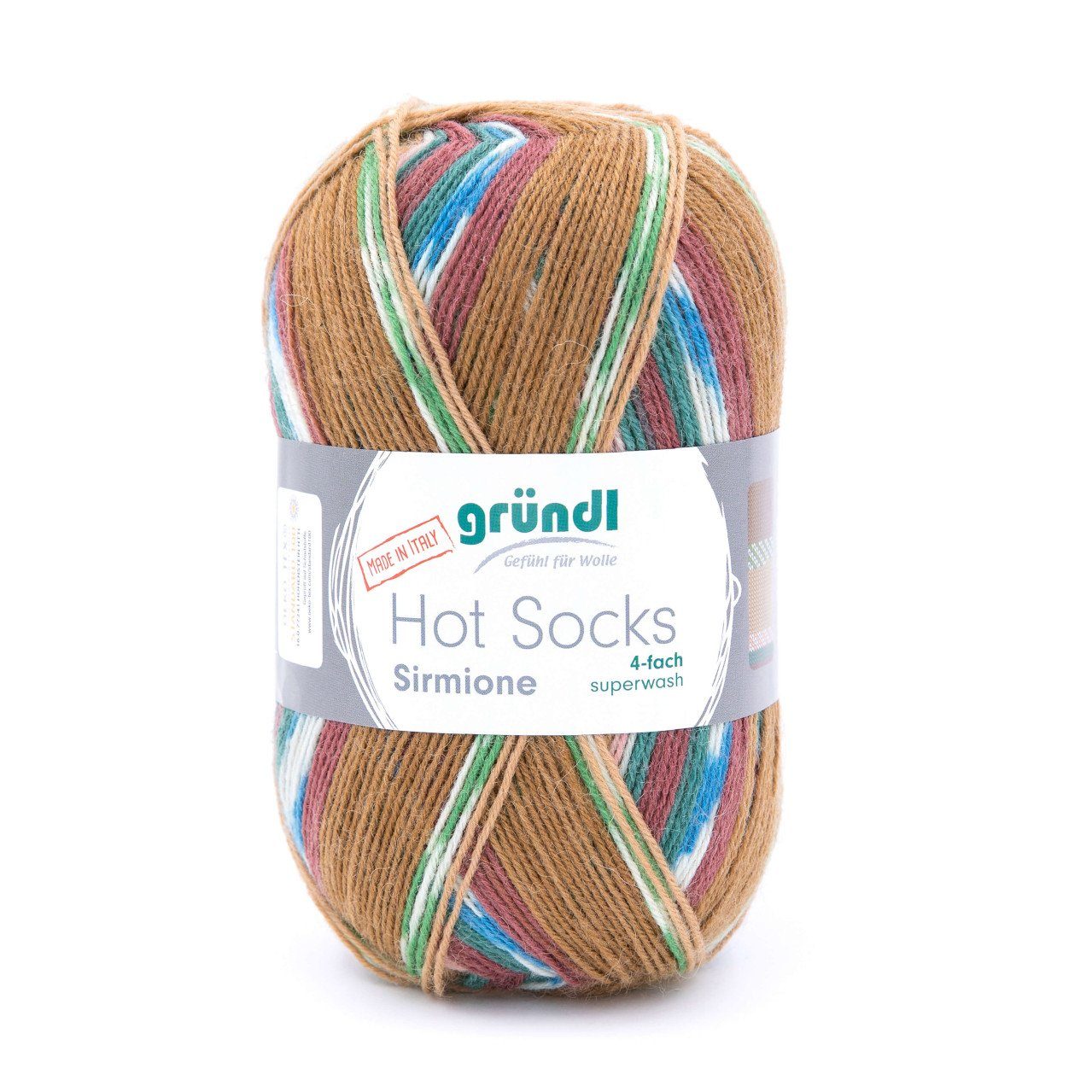 Aus italienischer Sockenwolle. Strapazierfähiges, maschinenwaschbares Sockengarn, hohe Festigkeit des Sockengarnes durch 4/6/8 fach-Verzwirnung und dadurch gute Haltbarkeit der Socken. Die Faser ist superwash ausgerüstet, ist daher problemlos in der Waschmaschine bei 40 C° im Schonwaschgang waschbar, das Sockengarn verfilzt nicht. 100 g für ein Paar Socken