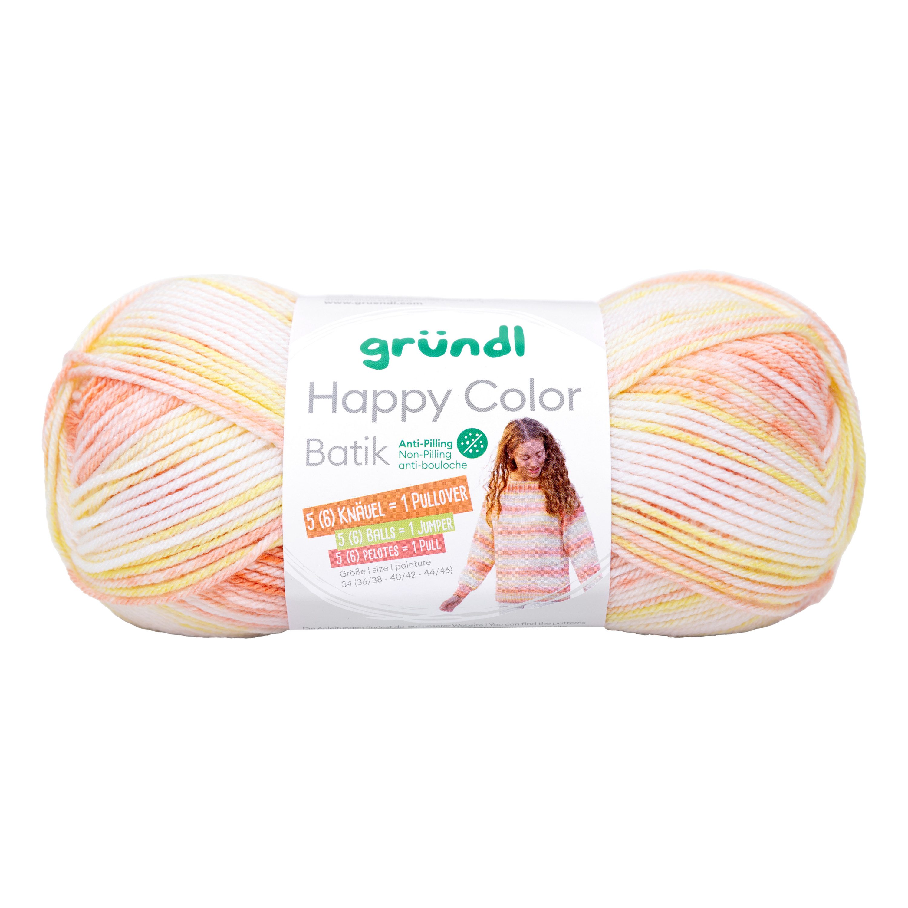 Das Gründl 'Happy Color Batik' ist das perfekte Garn für kreative Strickprojekte. Mit seinem Farbverlaufseffekt zaubert es einzigartige Muster und Farbkombinationen auf deine Kleidungsstücke. Fünf bis sechs Knäule reichen bereits für einen Pullover und die empfohlene Nadelstärke von 4 - 5 sorgt für ein gleichmäßiges Strickbild. Das Garn ist aus 100 % Polyacryl (PAN) und somit besonders pflegeleicht. Wasche es einfach im Schonwaschgang bei bis zu 30 °C. Lass deiner Kreativität freien Lauf und kreiere einzigartige Mode mit dem Gründl 'Happy Color Batik'.