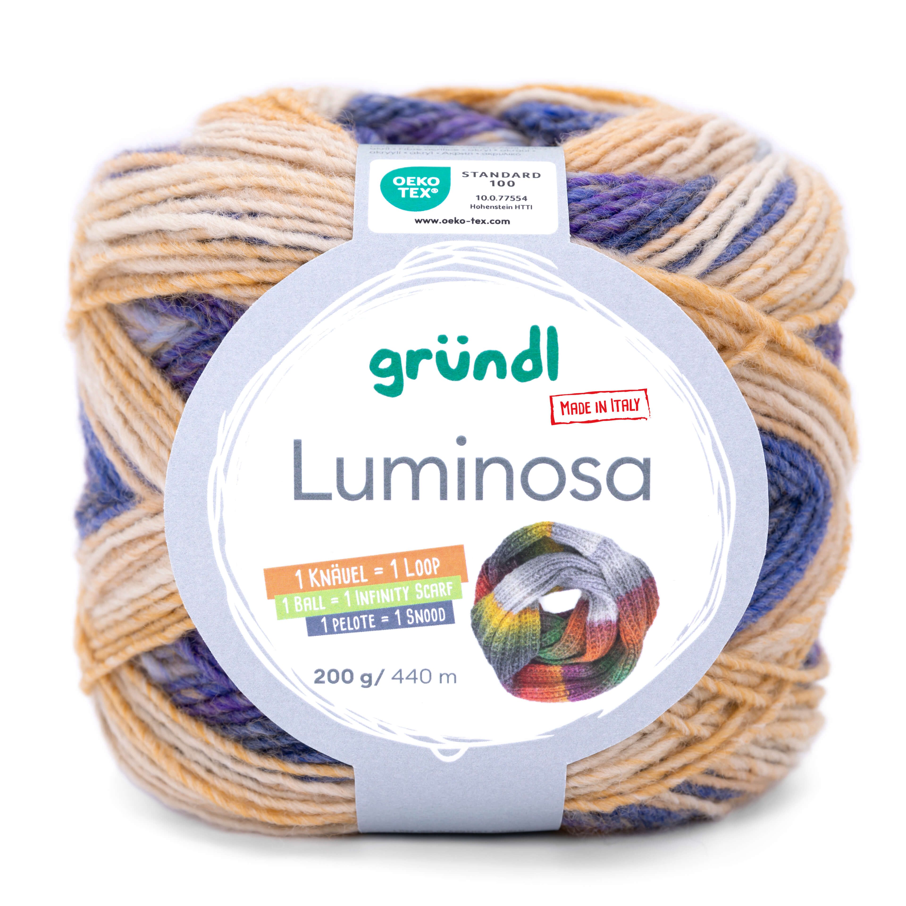 Luminosa Farbverlaufsgarn mit Schurwolle Häkelwolle, 440,00 m (Strickgarn, Strickwolle, Farbverlaufswolle, mit Anleitung in der Banderole, 1 Ball = 1 Loop), 51% Wolle, 49% Polyacryl