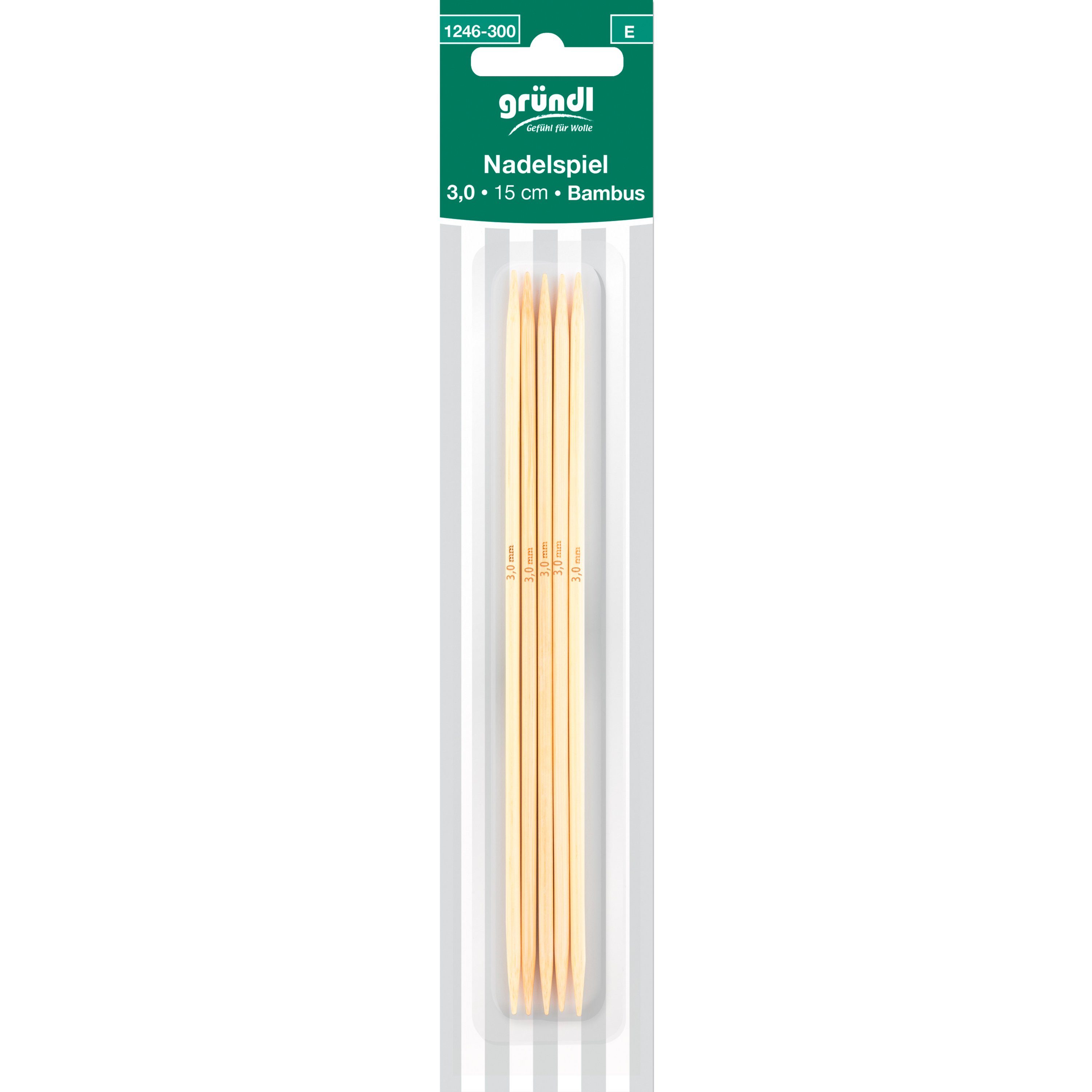 Gründl Nadelspiel 'Bambus' mit einer Длина von ca. 15 cm. Die 5 hochwertigen Nadeln aus Bambus eignen sich zum Stricken von Handarbeitsprojekten mit kleinem Umfang wie Socken, Stulpen oder Mützen. Eine ausgezeichnete Qualität, die für ein wunderbares Strickerlebnis und tolle Strickergebnisse sorgt.