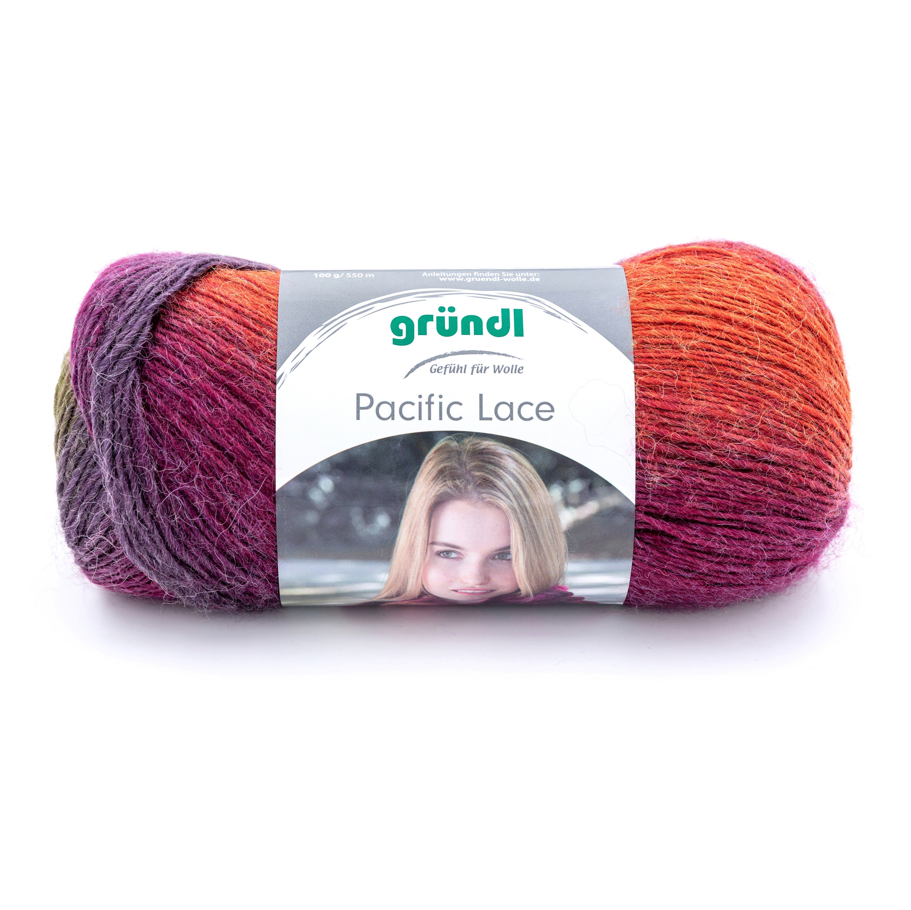 Gründl Pacific Lace - Lacegarn mit 10% Alpaka Wolle Komm mit uns in einem Ozean an Farben schwimmen! Unsere Pacific Lace ist ein Lacegarn mit Wow-Effekt! Das Garn zum Stricken und Häkeln enthält 10% Alpaka-Wolle, dass dir durch seinen langrapportigen, multicolorigem Farbverlauf mit fließenden harmonischen Übergängen einen ganz besonderen Farbeffekt beschert. Von dem angenehm weichen Tragekomfort wirst du auch auf Anhieb begeistert sein. Das pflegeleichte Garn zaubert einzigartige Ergebnisse durch den wunderschönen, fließenden Farbübergang. Das Beste: Du kannst dein Strickstück problemlos bei 30 Grad waschen. Verwende am besten keinen Weichspüler. Wir empfehlen dir dir Strickstücke liegend auf einem Handtuch zu trocknen, zieh es am besten dabei in die richtige Form, so hast du lange Freude! Was du aus Gründl Pacific Lace machen kannst Das perfekte Garn für alle Lace-Strickprojekte. Ideal für luftig leicht gestrickte Schals und Tücher in der aktuellen Lace Technik, die durch die traumhafte Farbverläufe so richtig zum Strahlen kommen! Der Begriff "Lace" kommt aus dem Englischen und bedeutet so viel wie "Spitzenmuster". Dank Alpaca-Wollanteil wird es gleich so richtig kuschelig.
