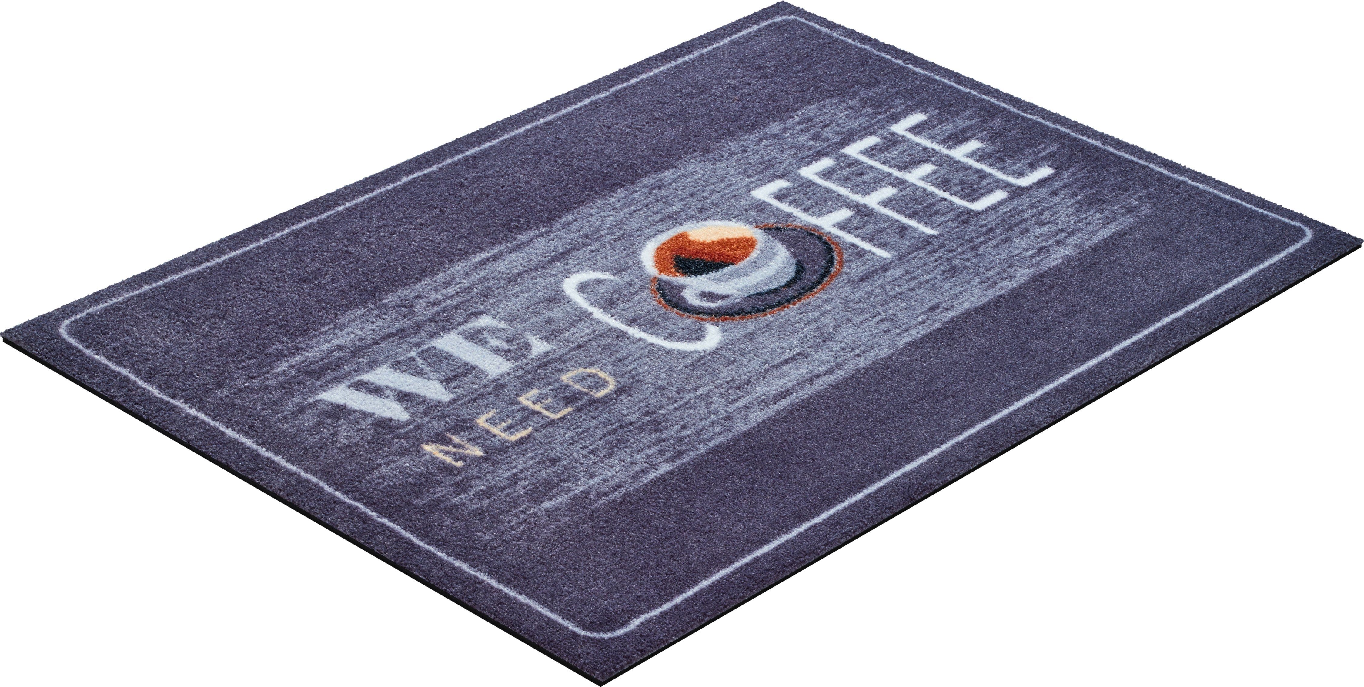 "We need Coffee" - mit diesem Hilferuf begrüßt Sie die elegante Wohn- und Fußmatte COFFEE. Sie passt damit ideal in Ihre Küche oder in die Kaffeebar und ist auch im Langformat als Läufer lieferbar. Oder sie platzieren COFFEE als freundliche Einladung in den Flur oder vor Ihre Haustür, denn die Matte ist natürlich auch im Außenbereich bestens einsetzbar. Ob innen oder außen, ob mit oder ohne Kaffee, die stylishe Fußbodenmatte COFFEE vom Markenhersteller GRUND wird Ihnen überall Freude bereiten. Die grau melierte Grundfarbe macht die Fußbodenmatte sehr unempfindlich und passt perfekt zu vielen modernen Einrichtungsstilen. Der angenehm dichte, feste und seidige Flor schafft eine wohlig-warme Atmosphäre, dabei verträgt der Flor aus hochstrapazierfähigem Polyamid selbst stärkste Beanspruchungen und hält beim Außeneinsatz Schmutz und Staub zurück. Die Rückenbeschichtung der Matte sorgt dafür, dass sie auf allen Unterböden sicher und rutschfest aufliegt. Dabei ist sie auch für Räume mit Fußbodenheizung geeignet. Waschen Sie die Matte je nach Einsatz bei 30 °C in der Waschmaschine so oft Sie möchten. Trocknen können Sie die Matte bei niedriger Temperatur im Trockner oder ganz einfach flach auf dem Boden liegend. Dann werden Sie sehr lange viel Freude an diesem dekorativen und nützlichen Produkt haben. Ein Markenprodukt Made in Europe. 5 Jahre Garantie.