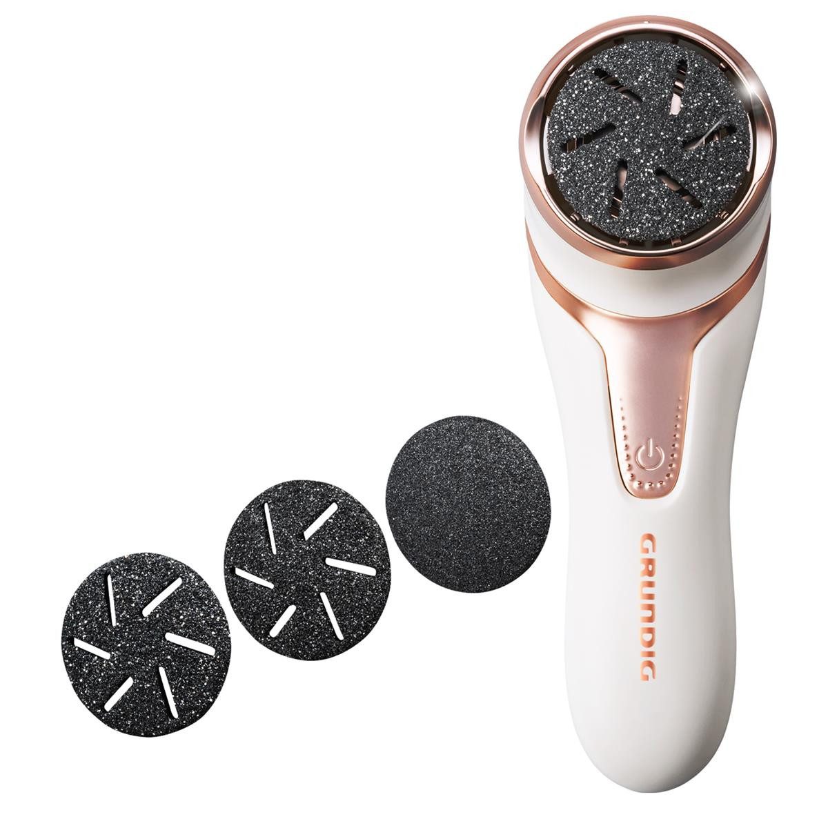 Lieferumfang | 1 x Grundig Hornhautentferner elektrisch,3 x austauschbare, nachbestellbare Schleifscheiben - fein, mittel, grob,1 x Bedienungsanleitung,1 x USB Ladekabel,1 x Aufsatzklammer |