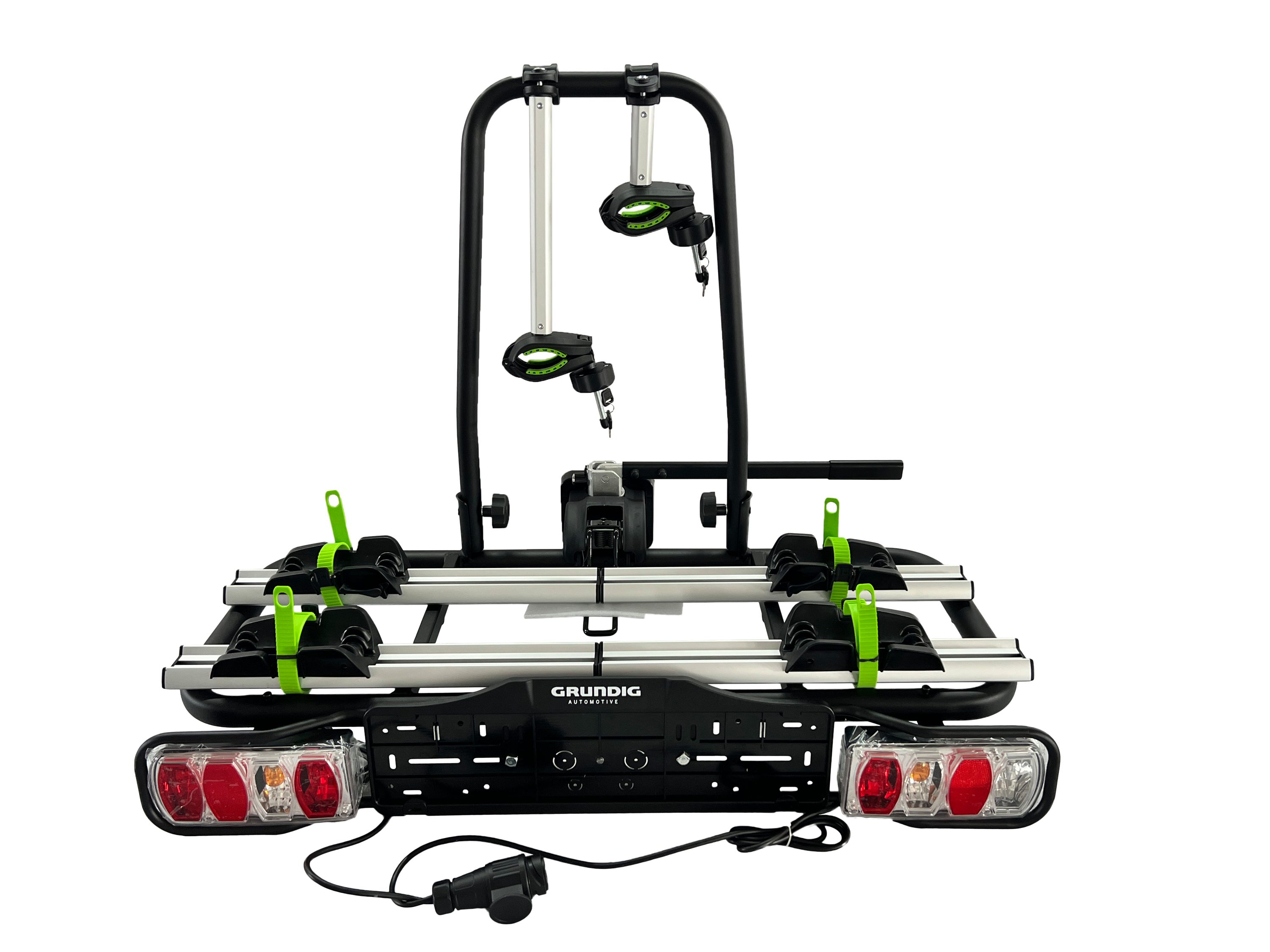 Der GRUNDIG Automotive Nizza 11-2EB ist ein hochwertiger Fahrrad-Anhängerkupplungsträger, der entwickelt wurde, um zwei Fahrräder sicher und bequem zu transportieren. Mit einer beeindruckenden Gesamtlast von 60 kg können Fahrräder mit einem Gewicht von bis zu 30 kg pro Stück problemlos auf diesem Träger montiert werden.